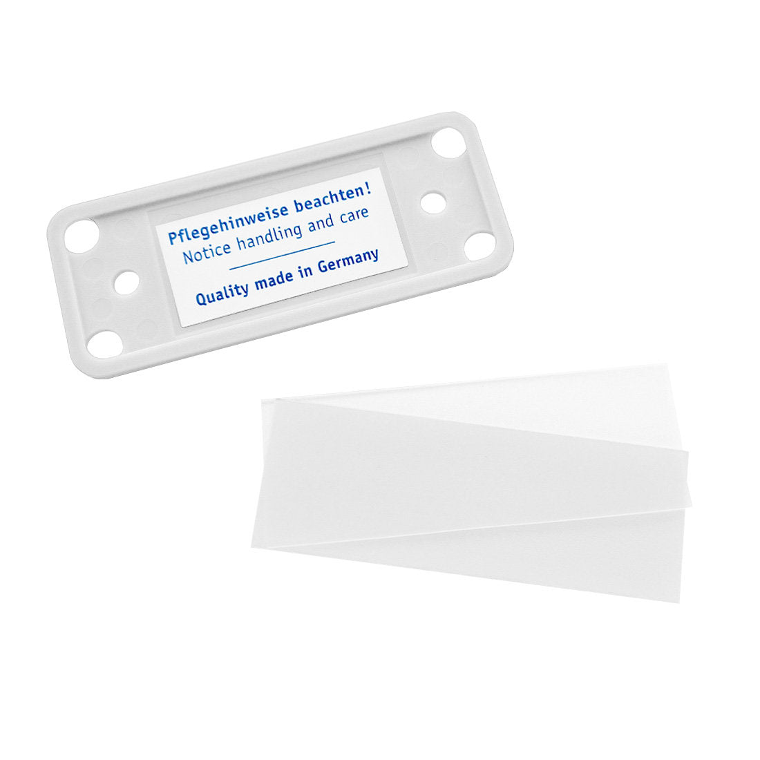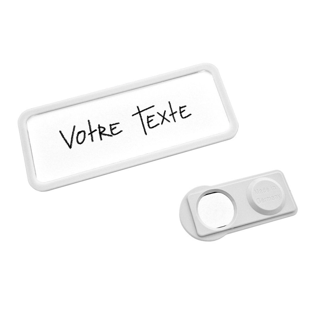 Badge nominatif blanc Office avec système d'insertion papier et protection antireflet. Permet d'afficher facilement un nom, une fonction ou un titre professionnel. Solution idéale pour l'identification lors de salons professionnels, conférences et réunions d'entreprise. Choisissez entre trois tailles et cinq fixations différentes. Vendu à partir de 10 pièces.