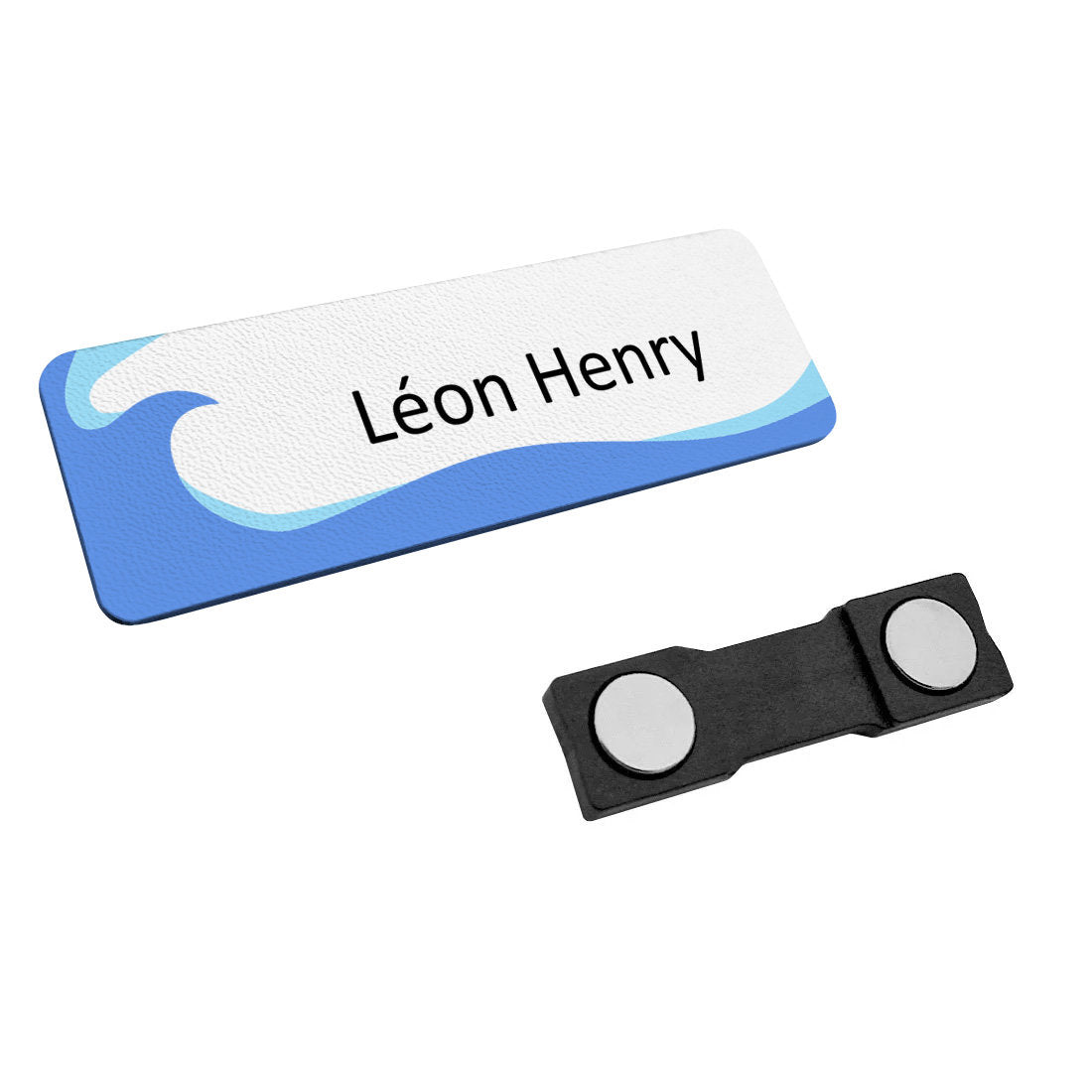 Badge nominatif en plastique personnalisé avec double aimant ou épingle. Créez facilement vos propres badges en y inscrivant vos noms, fonctions ou titres de postes. Solution pratique et professionnelle pour l'identification lors de salons professionnels, conférences, séminaires et réunions d'entreprise. Vendu à l'unité.