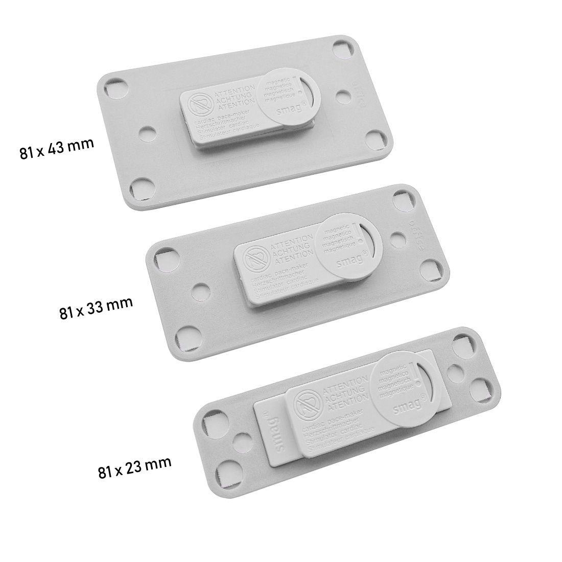 Badge nominatif gris clair Office avec plusieurs tailles et fixations - à partir de 10 pièces