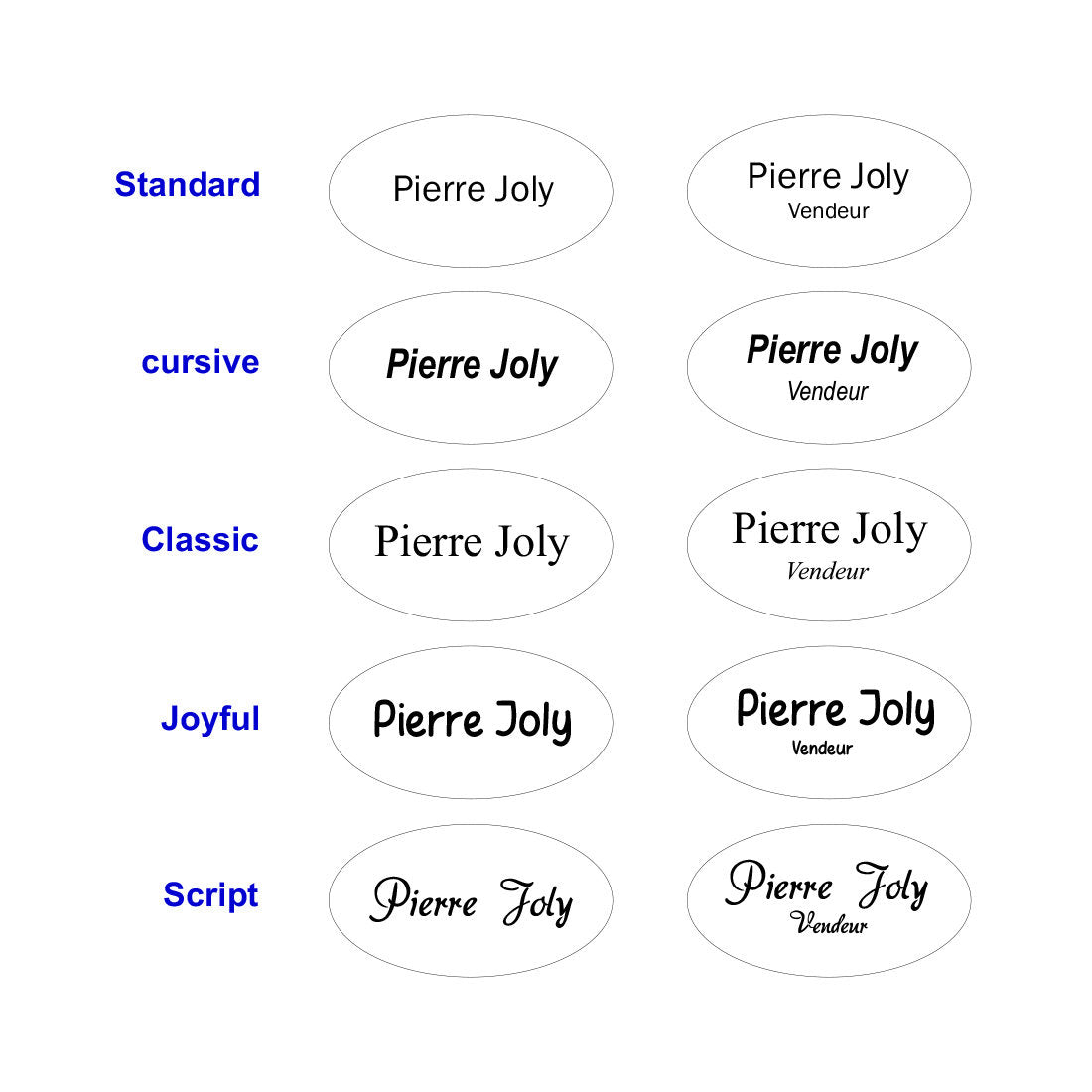 Badge nominatif ovale en plastique personnalisé avec double aimant ou épingle ou pince crocodile. Créez facilement vos propres badges en y inscrivant vos noms, fonctions ou titres de postes. Solution pratique et professionnelle pour l'identification lors de salons professionnels, conférences, séminaires et réunions d'entreprise. Vendu à l'unité. En savoir plus