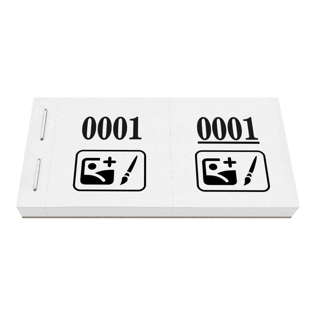 Bloc vendeur numéroté avec carnets de 50 doubles numéros. Personnalisez ces carnets de tickets avec votre design. Pratique pour les loteries, bingo ou tombola. Les numéros commencent à 0001 et se terminent aux doubles numéros que vous commandez. Avec perforation.