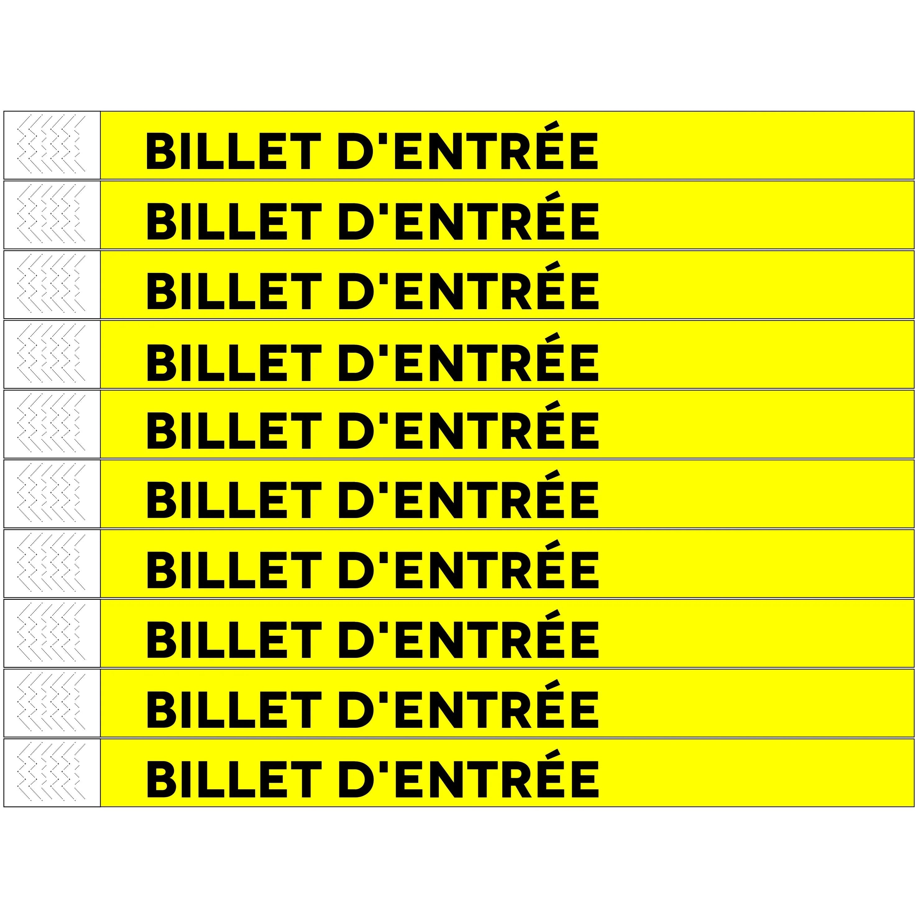 Bracelets jaunes Billet d'entrée en Tyrex avec dimensions de 248 x 19 mm.