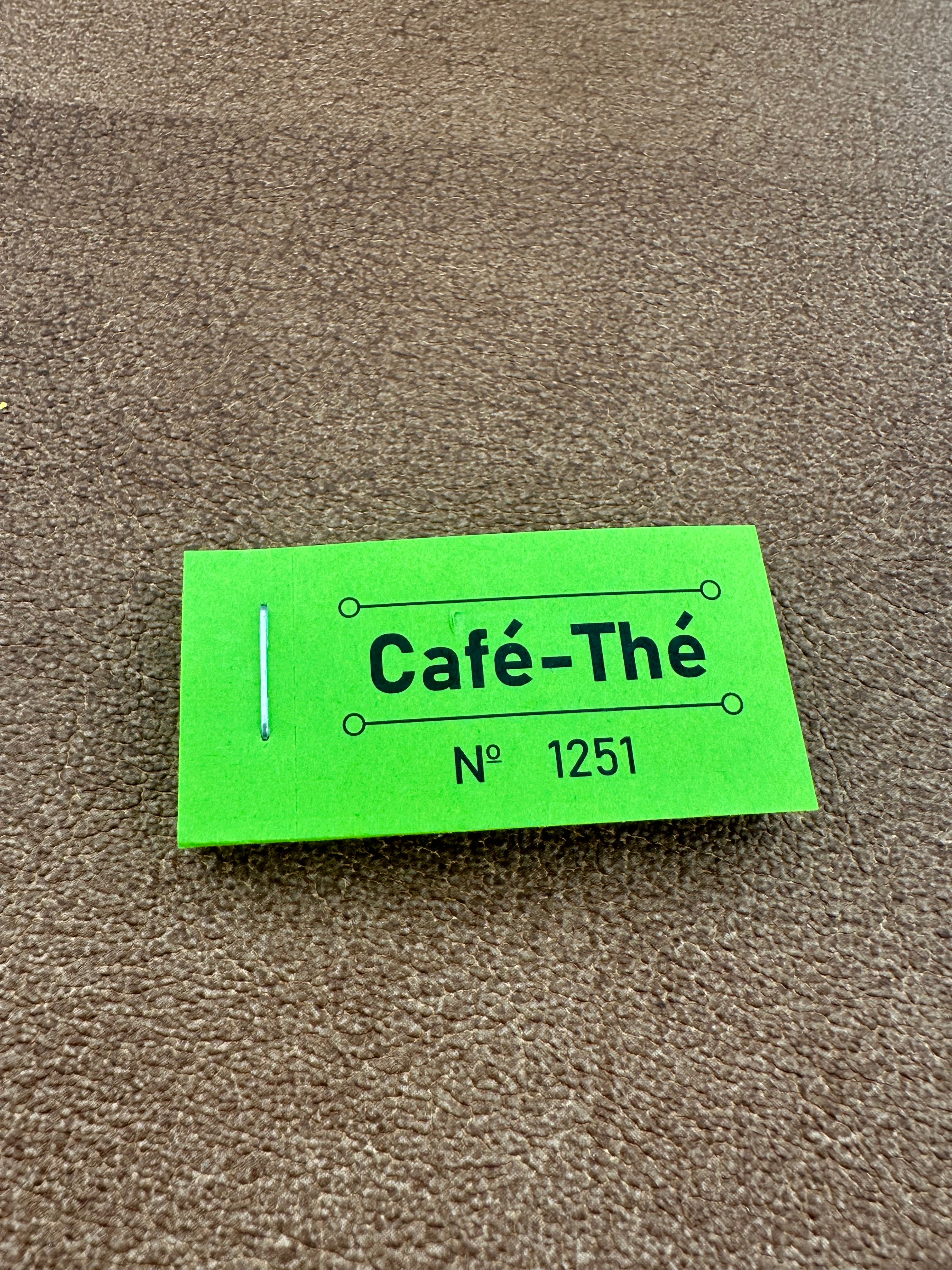 Carnet de tickets vert café-thé - 50 x 30 mm - 50 tickets