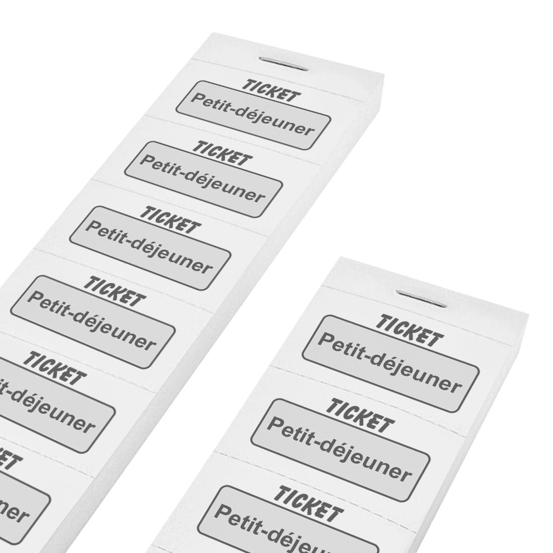 Tickets repas avec texte « petit-déjeuner » de 50 x 27.5 mm sur bandes. Conçus pour donner aux visiteurs pour chercher leurs petits-déjeuners. Les tickets sont perforés et faciles à déchirer. Vendus par 1000 tickets. En savoir plus