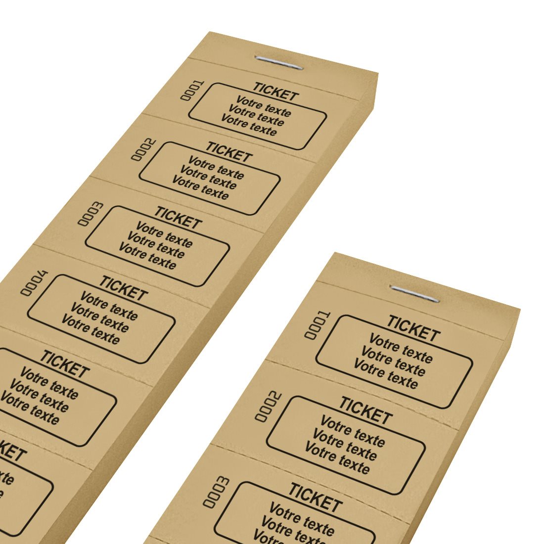 Carnet de tickets à personnaliser avec 3 lignes de texte et numérotés - 1000 tickets