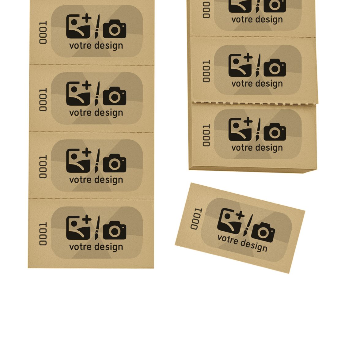 Personnalisez ces tickets numérotés avec votre design ! Ces tickets sont un excellent mode de paiement lors de votre événement ou de votre fête. Choisissez entre 11 couleurs. Vendus par 1000 tickets. En savoir plus