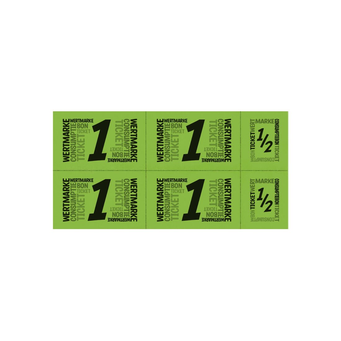 Tickets mesurant 102,5 x 110 mm avec un ticket et un demi-ticket pour des consommations. Grâce aux plusieurs langues, vous utilisez ces tickets pour différents événements, fêtes et autres occasions. Les tickets sont perforés par pièces, ce qui les rend faciles à déchirer entre eux. En savoir plus