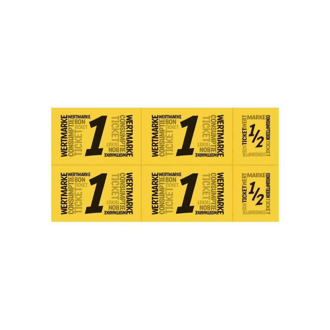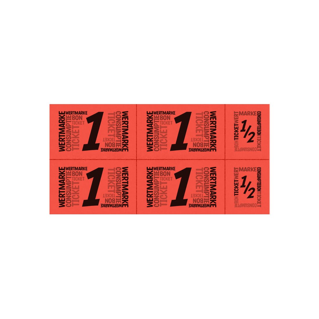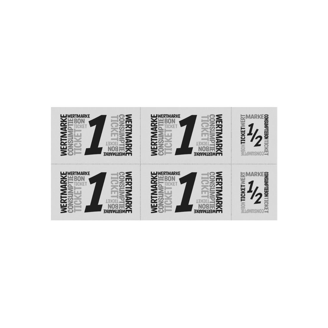 Tickets mesurant 102,5 x 110 mm avec un ticket et un demi-ticket pour des consommations. Grâce aux plusieurs langues, vous utilisez ces tickets pour différents événements, fêtes et autres occasions. Les tickets sont perforés par pièces, ce qui les rend faciles à déchirer entre eux. En savoir plus
