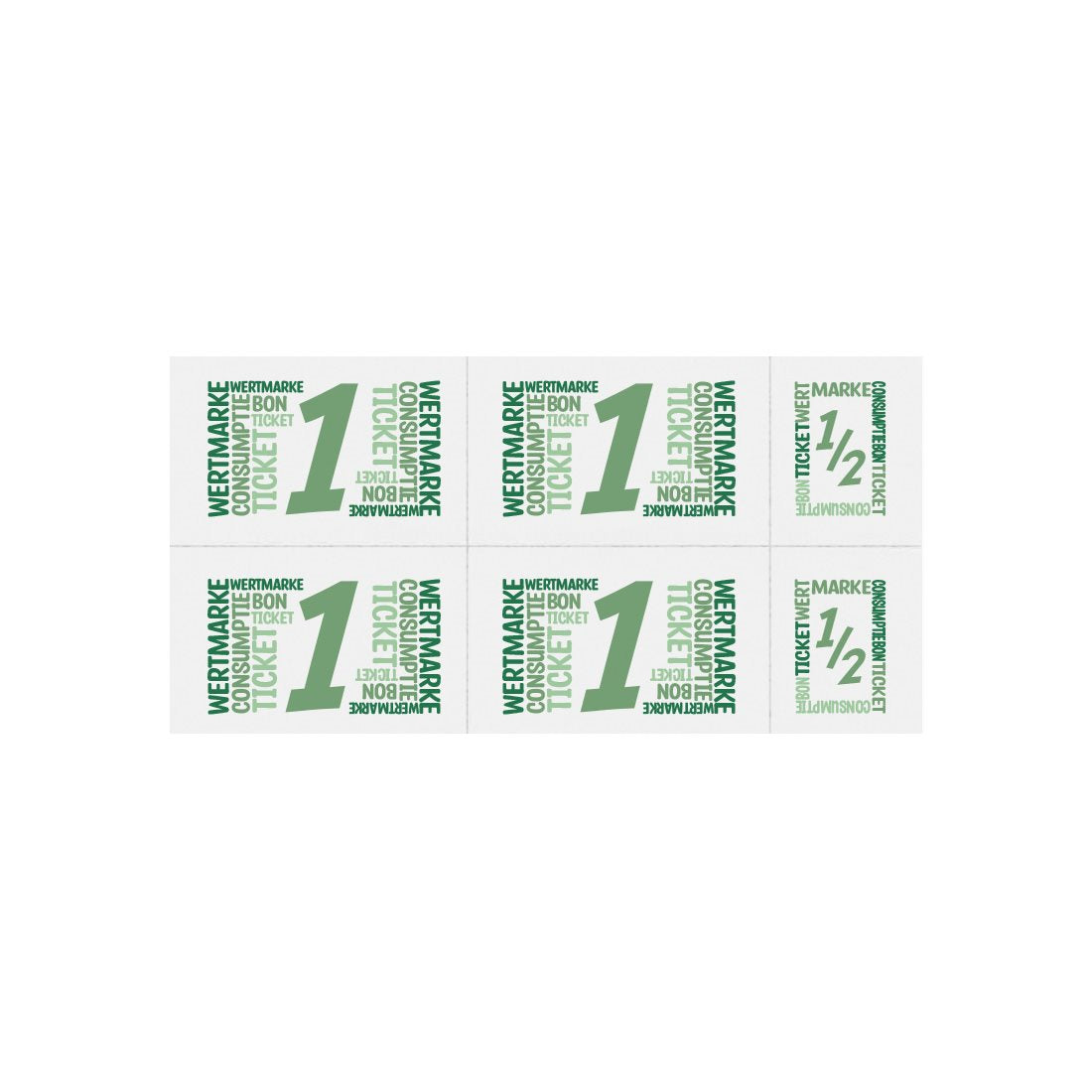 Tickets mesurant 102,5 x 110 mm avec un ticket et un demi-ticket pour des consommations, impression en couleur. Grâce aux plusieurs langues, vous utilisez ces tickets pour différents événements, fêtes et autres occasions. Les tickets sont perforés par pièces, ce qui les rend faciles à déchirer entre eux. En savoir plus