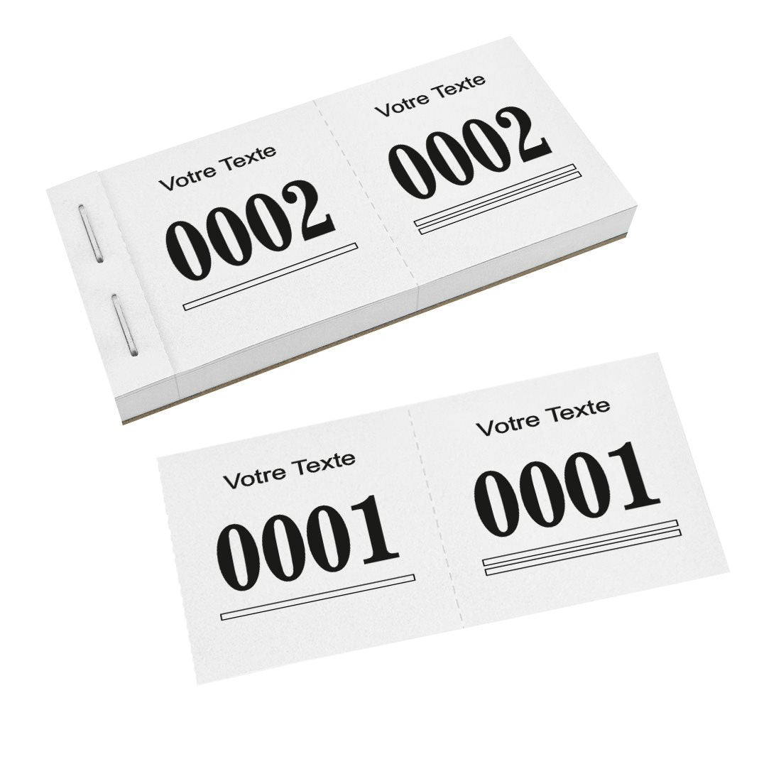Tickets de vestiaire à personnaliser dans un carnet. Idéal pour des théâtres, salles de concert, hôtels ou discothèques. Accrochez facilement les tickets à un manteau ou sac à main. Les numéros commencent à 0001 et se terminent aux doubles numéros que vous commandez. Avec perforation. En savoir plus