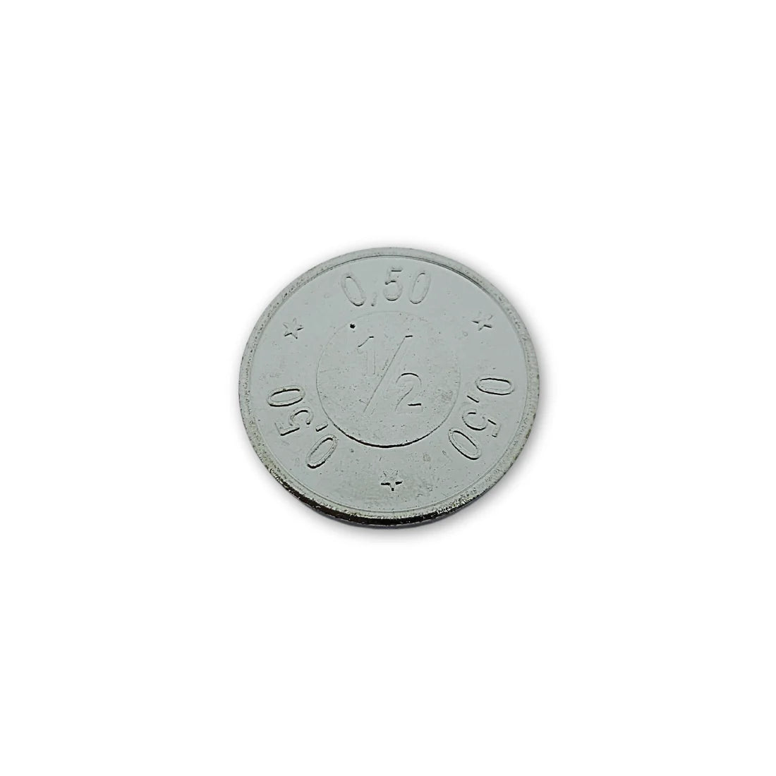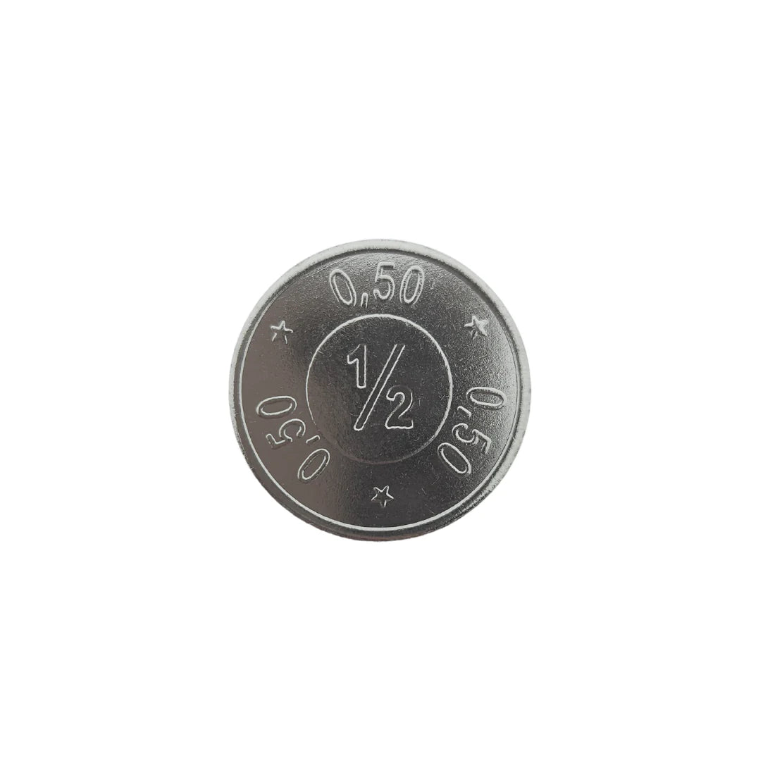 Jeton de buvette en acier nickelé avec impression 1/2 et 0,50