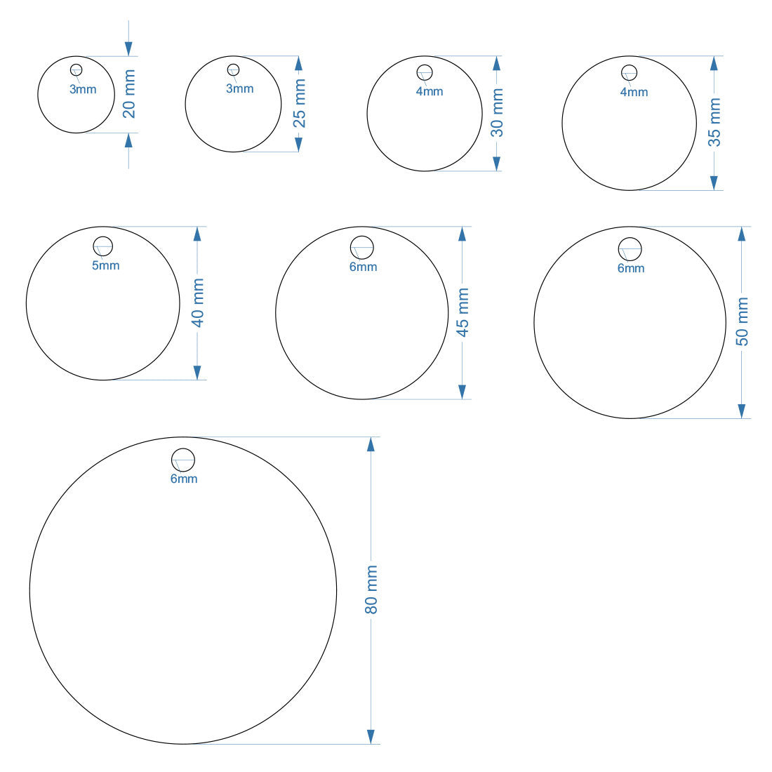 Jeton en inox avec trou. Choisissez entre plusieurs diamètres, il est possible de coller des autocollants ou de graver le jeton. Résistant contre la corrosion. Vendu par pièce.