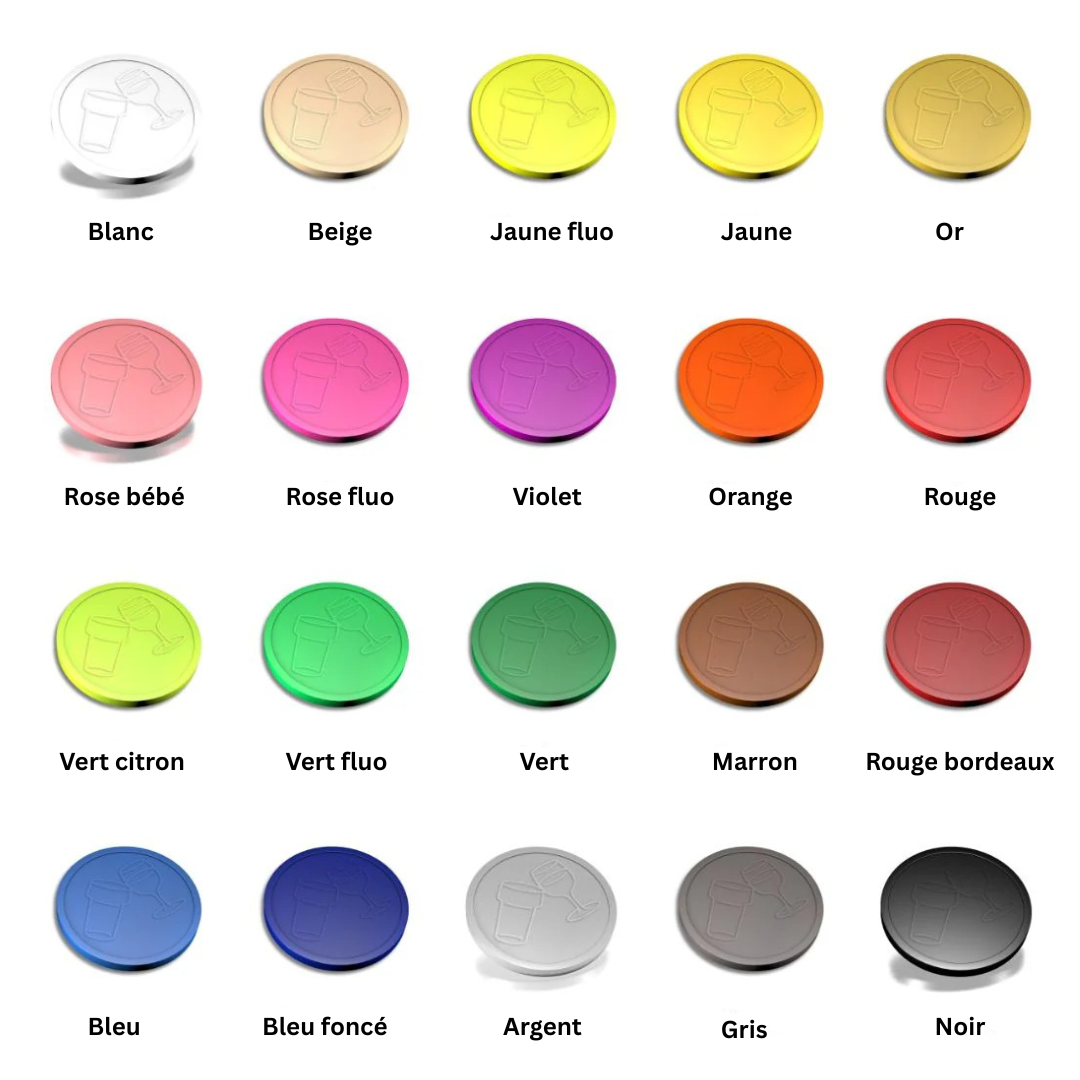 Découvrez les jetons pour buvette de CombiCraft avec gravure d'un verre de bière et de vin en relief sur les deux côtés des jetons. Chaque jeton dispose d'un diamètre de 29 mm avec une épaisseur d'environ de 2,35 mm. Ces jetons sont très pratiques lors d'un paiement à la buvette.