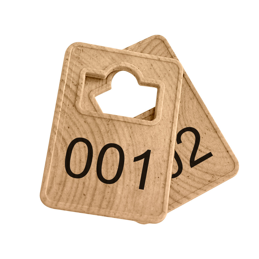 Jeton vestiaire numéroté Tiffany - avec série de numéros - 50 x 36 mm - en fibre de bois - 100 pièces