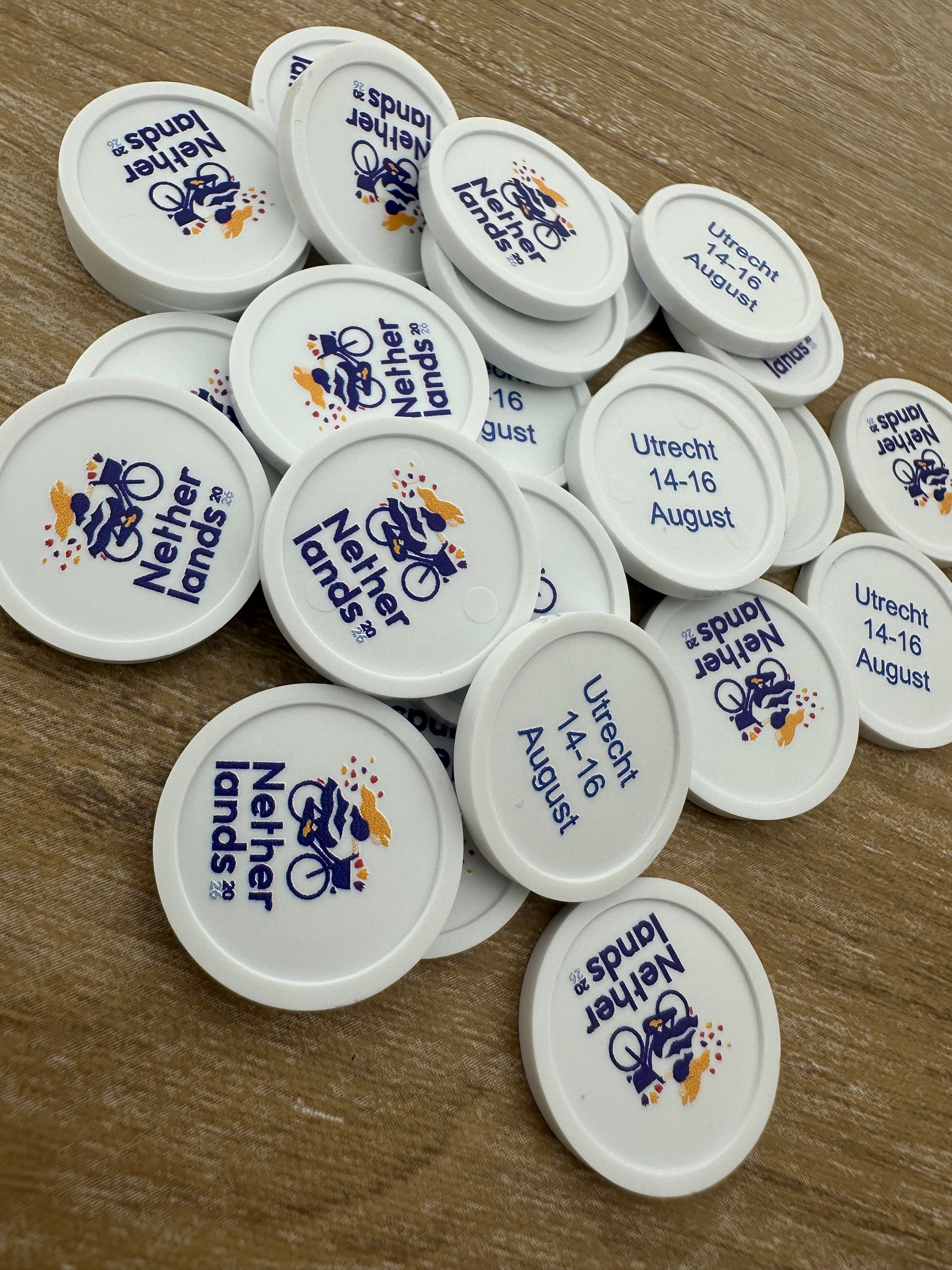 Équipez-vous de jetons caddie personnalisés pour chaque occasion ! Ces jetons caddie avec un diamètre de 23 mm (format 1 €) et d'une épaisseur d'environ de 2,30 mm sont vendus par 100 pièces.