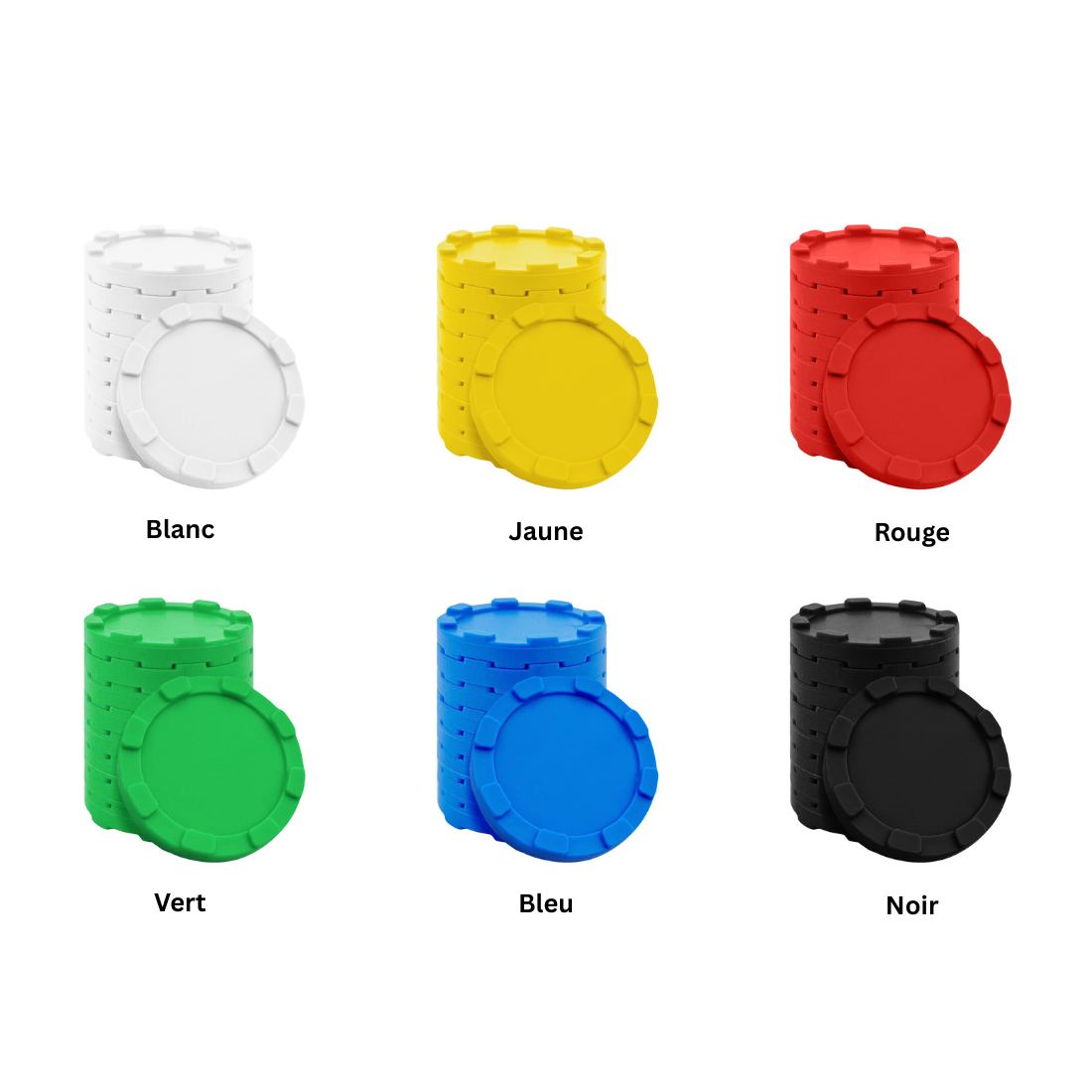 Découvrez les jetons empilables de CombiCraft avec un diamètre de 29 mm. Les jetons ont un bord ouvert et sont faciles à empiler, disponibles en plusieurs couleurs et vendus par 100 pièces.