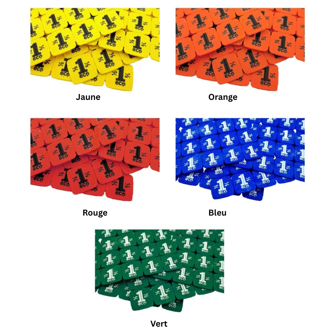 Fournissez-vous des jetons festival de CombiCraft afin d'avoir un bon déroulement de votre événement ! Ces jetons sont vendus par 40 plaquettes avec 25 jetons, ce qui vous donne 1000 jetons en total. En savoir plus
