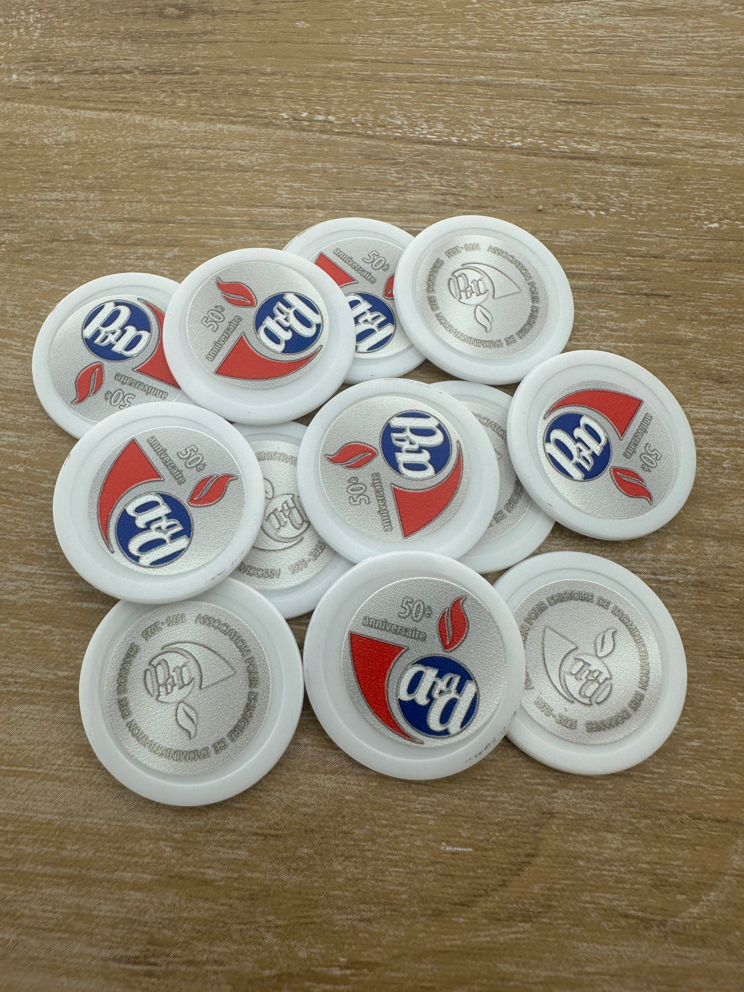 Important : En dessous de 6 000 jetons, notre procédé d'impression peut présenter un léger décalage par rapport au centre, surtout visible sur les designs circulaires. Privilégiez les formes non rondes pour minimiser cet effet. À partir de 6 000 jetons, le centrage est garanti.