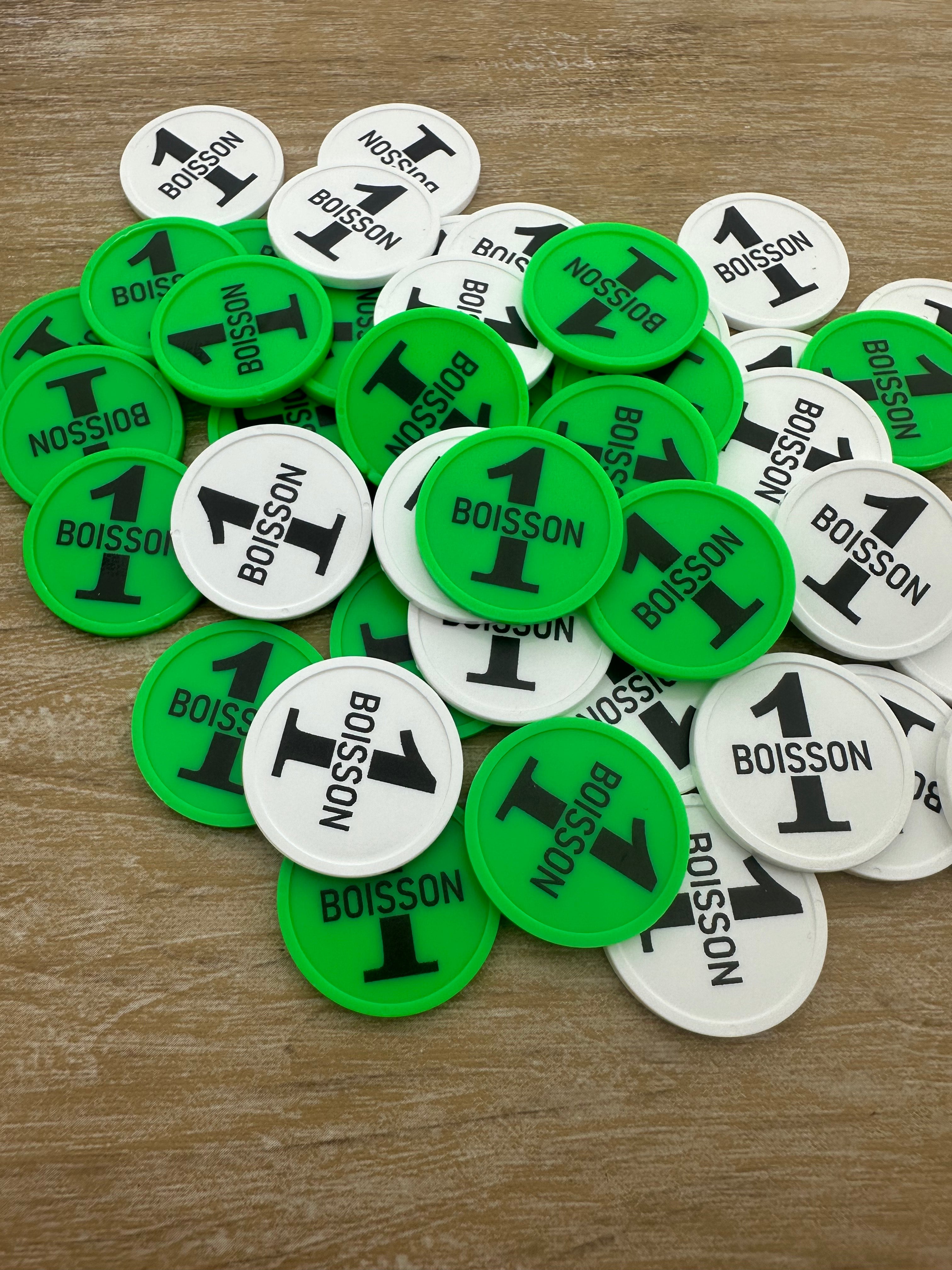 Jetons pour buvette 1 boisson Ø29 mm - 100 pièces - plusieurs couleurs