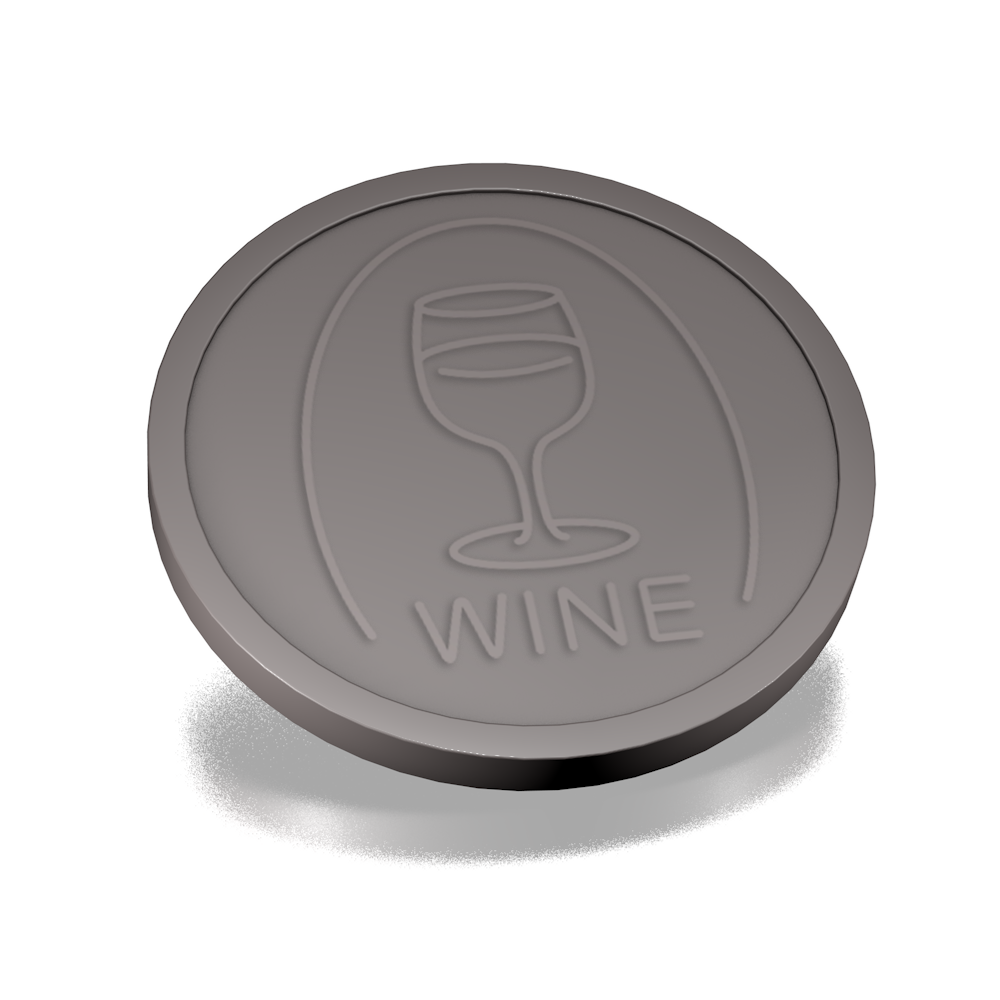 Découvrez les jetons pour buvette de CombiCraft avec une impression d'un verre de vin en relief avec le texte 'Wine' (vin) sur les deux côtés des jetons. Chaque jeton dispose d'un diamètre de 29 mm avec une épaisseur d'environ de 2,35 mm. Ces jetons sont très pratiques lors d'un paiement à la buvette.