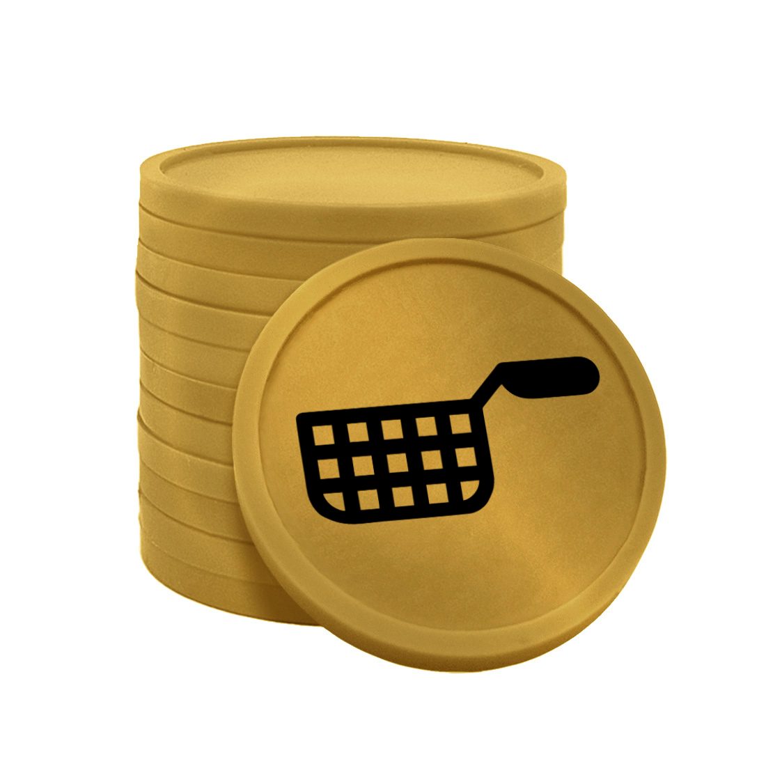 Découvrez les jetons pour buvette de CombiCraft avec une impression d'une friteuse. Chaque jeton dispose d'un diamètre de 29 mm avec une épaisseur d'environ de 2,35 mm. Ces jetons sont très pratiques lors d'un paiement à la buvette ou au stand de boisson.