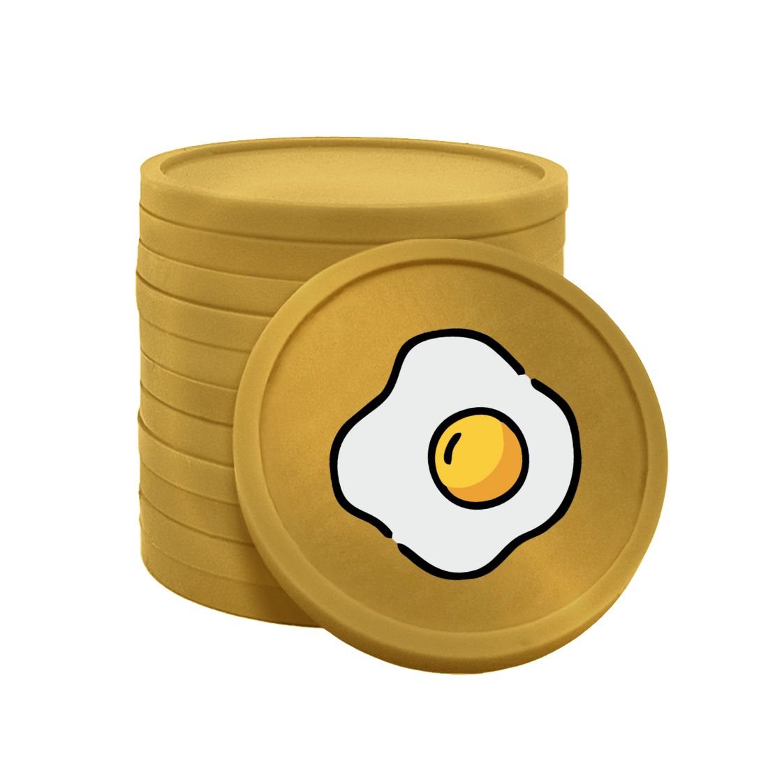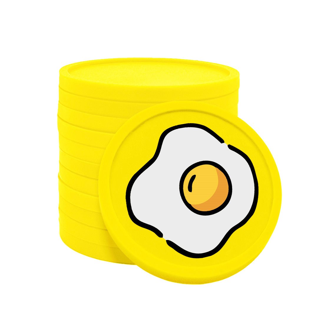 Découvrez les jetons pour buvette de CombiCraft avec une impression d'un œuf au plat. Chaque jeton dispose d'un diamètre de 29 mm avec une épaisseur d'environ de 2,35 mm. Ces jetons sont très pratiques lors d'un paiement à la buvette ou au stand de boisson ou nourriture.