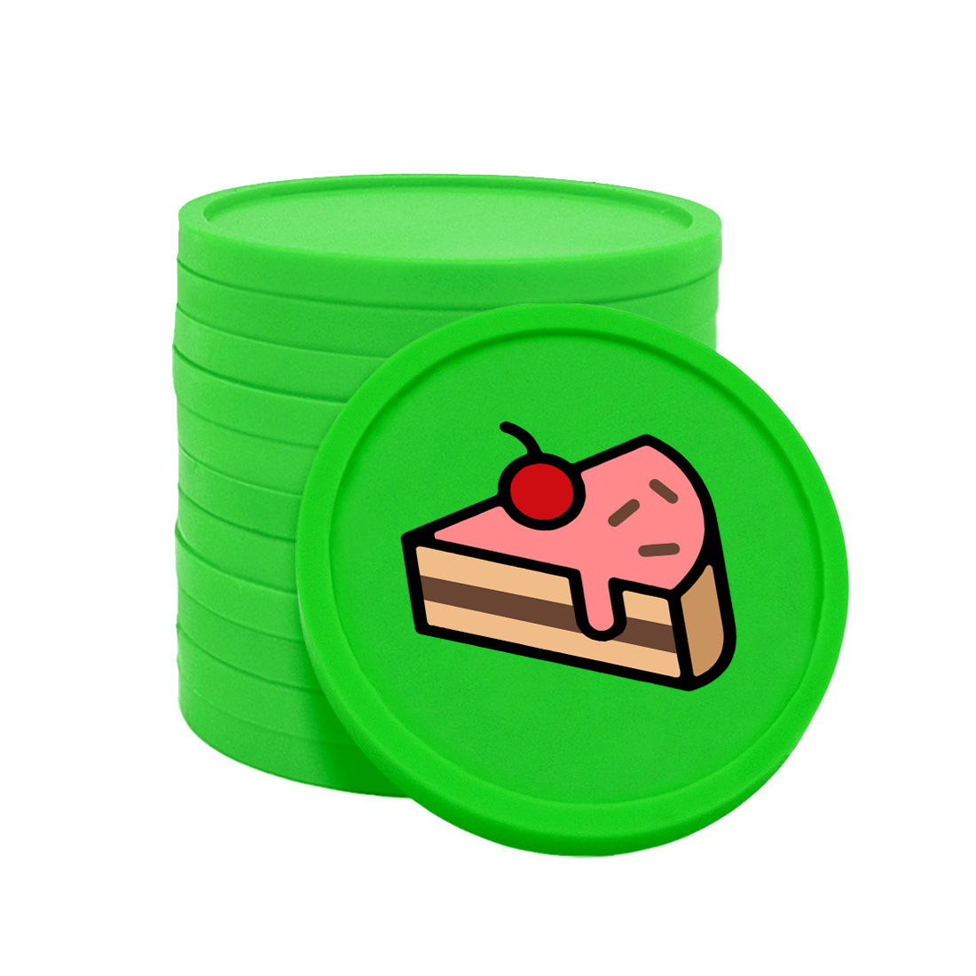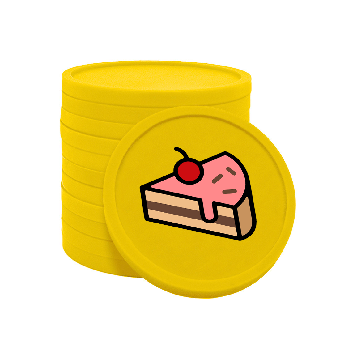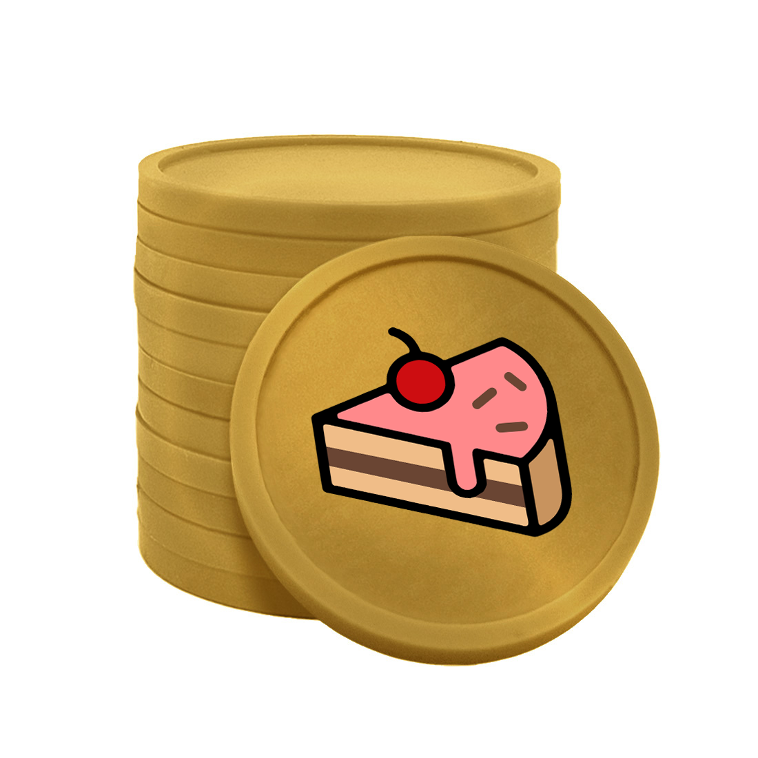 Découvrez les jetons pour buvette de CombiCraft avec une impression d'une pâtisserie. Chaque jeton dispose d'un diamètre de 29 mm avec une épaisseur d'environ de 2,35 mm. Ces jetons sont très pratiques lors d'un paiement à la buvette ou au stand de boisson. En savoir plus