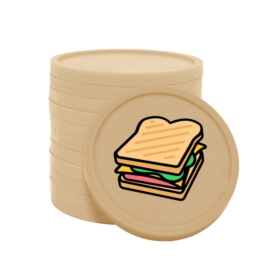 Découvrez les jetons pour buvette de CombiCraft avec une impression d'un sandwich. Chaque jeton dispose d'un diamètre de 29 mm avec une épaisseur d'environ de 2,35 mm. Ces jetons sont très pratiques lors d'un paiement à la buvette ou au stand de boisson. En savoir plus