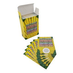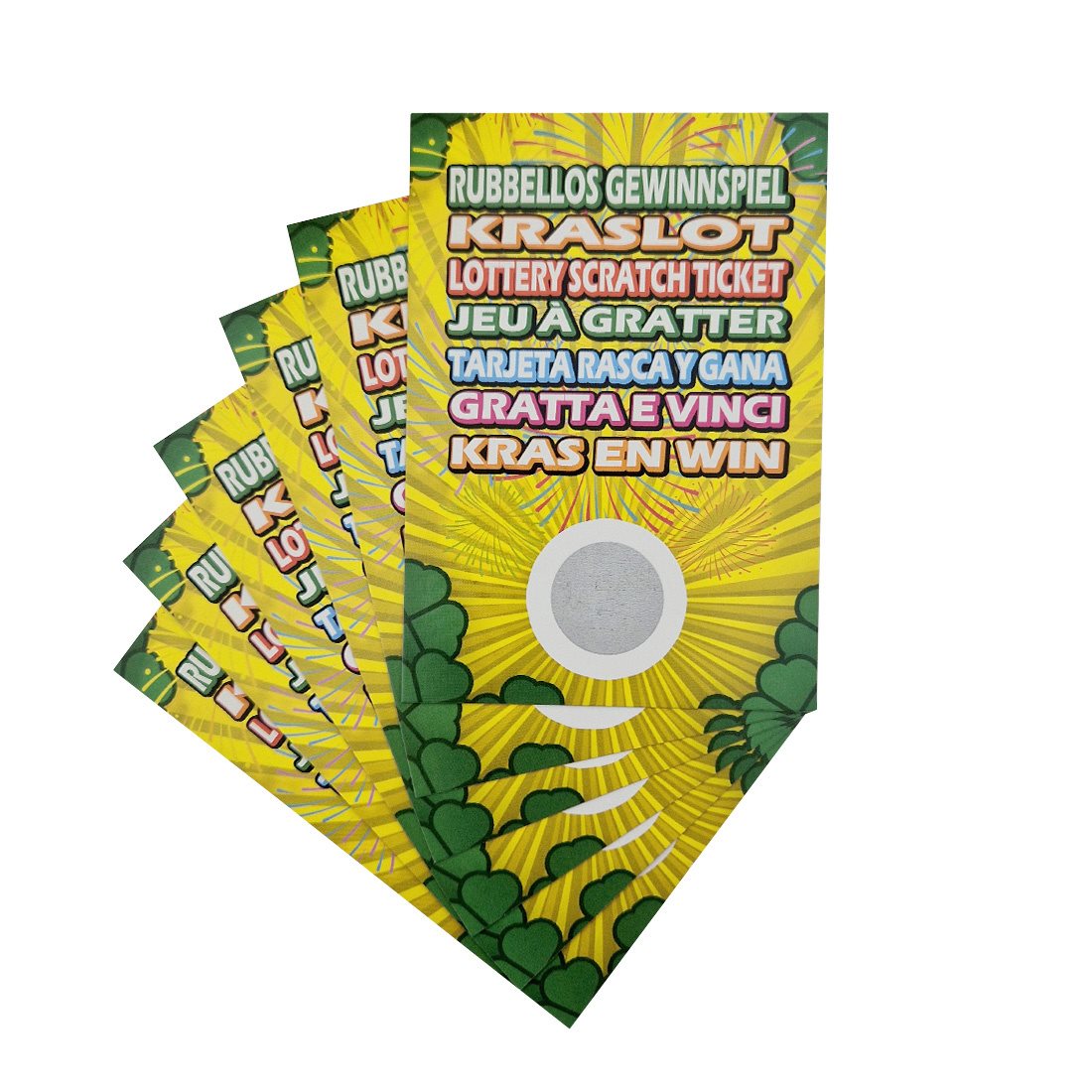 Ticket à gratter de 74 x 105 mm dans une boîte de 100 cartes. Chaque set contient 10 figures d'animaux pour un jeu à gagner. Idéal pour des tirages au sort, loteries, bingo ou pour tombolas.