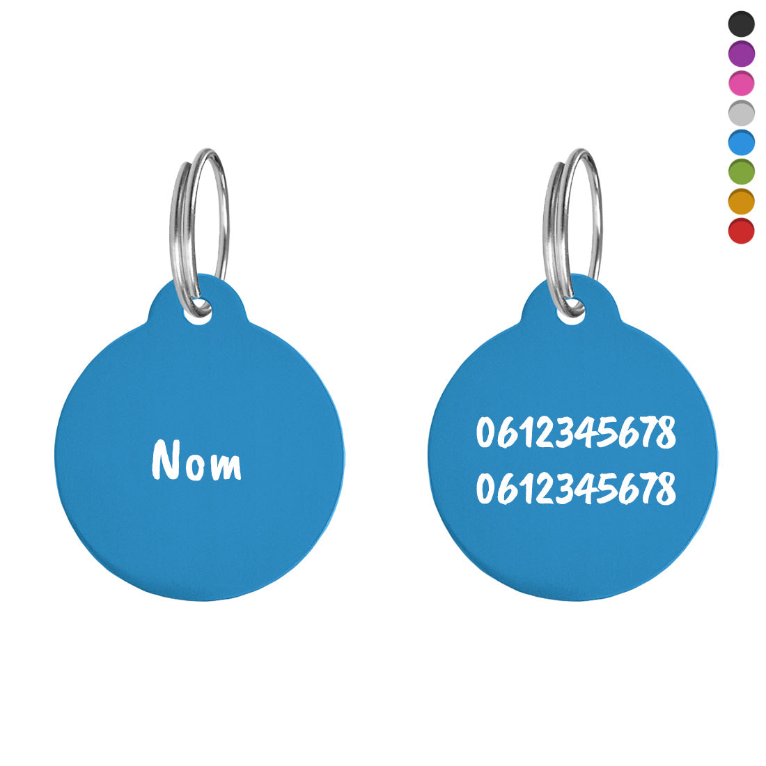 Médaille pour chien personnalisée, mesurant Ø30 mm. Le nom et votre texte sont gravés au recto et au verso de la médaille pour identifier facilement votre chien. De taille moyenne, cette médaille est parfaitement adaptée aux chiens de taille moyenne et de grande taille. Vendue à l'unité.