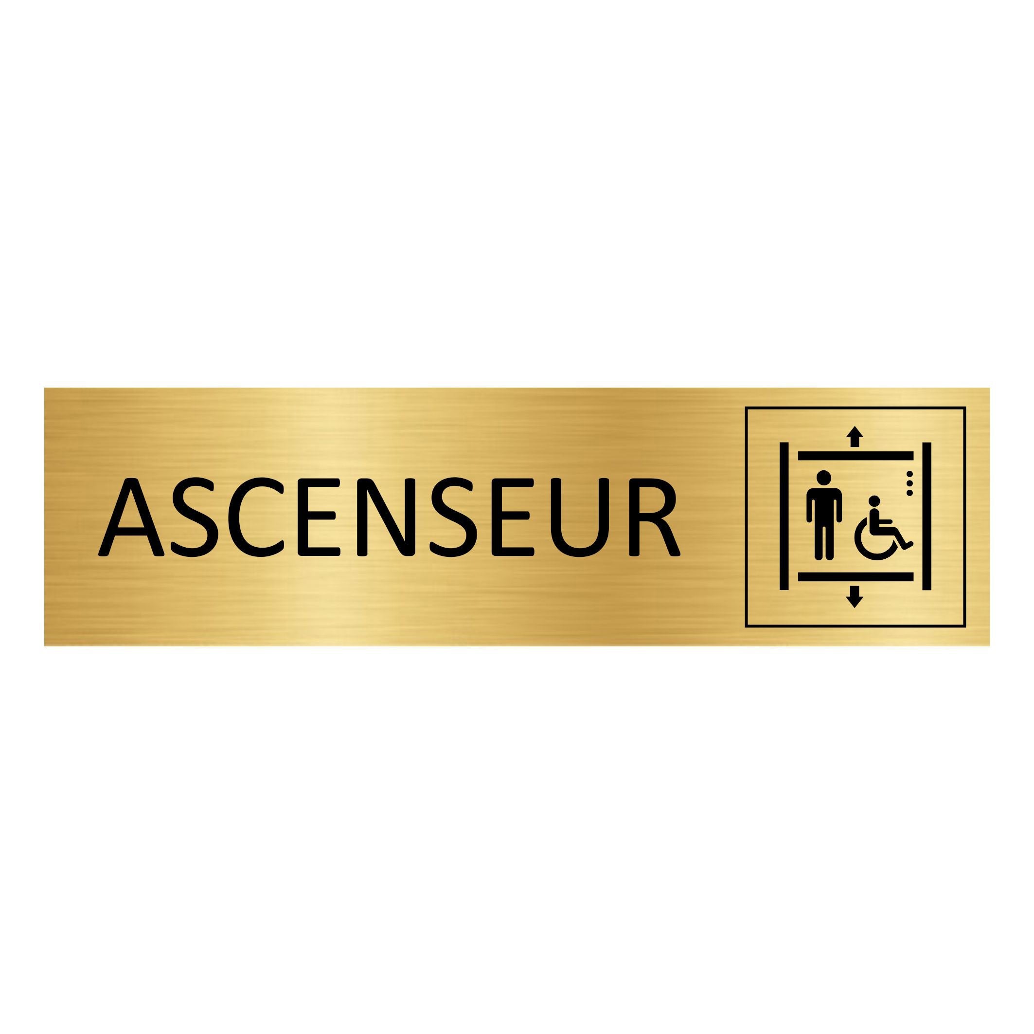 Plaque de porte en aluminium doré Ascenseur avec ruban adhésif à l’arrière. La plaque mesure 165 x 45 mm et a une épaisseur de 0,5 mm. À installer à l’intérieur comme à l’extérieur. En savoir plus