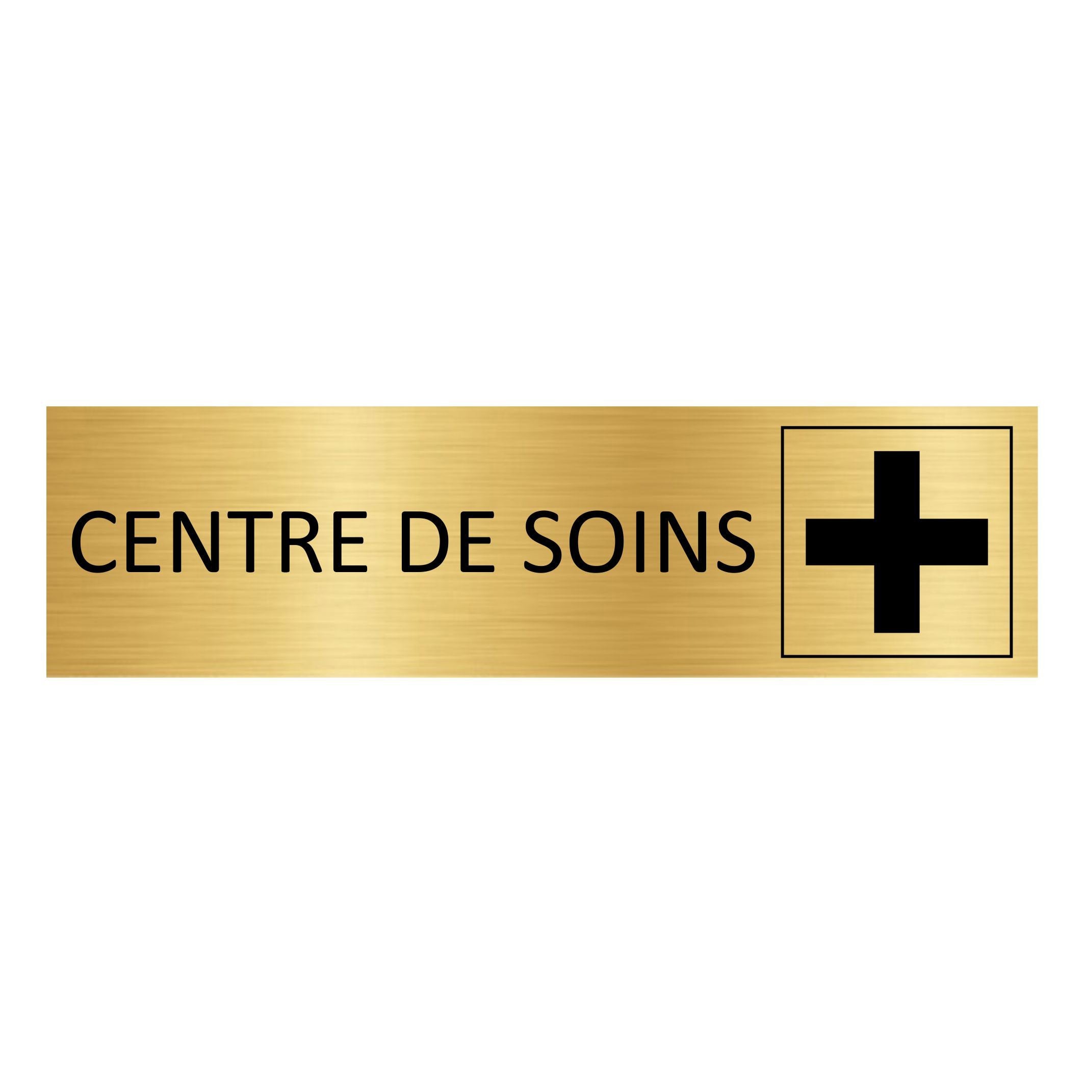 Plaque de porte pictogramme Centre de soins - aluminium doré - 165 x 45 mm - avec ruban adhésif