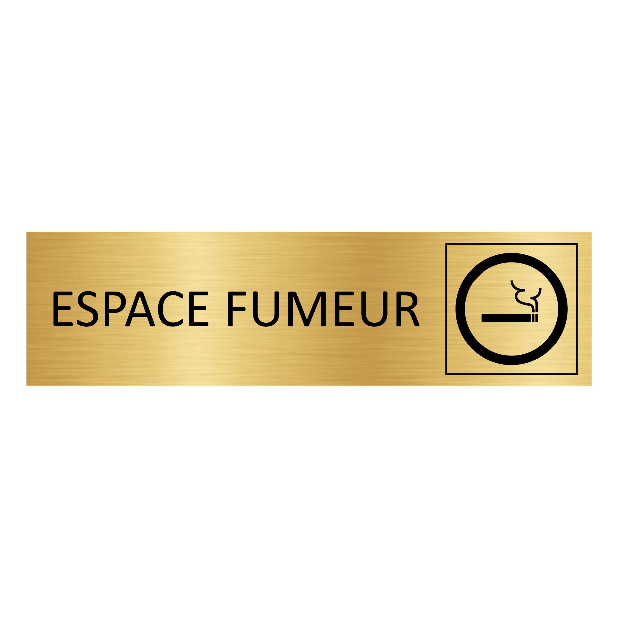 Plaque de porte pictogramme Espace fumeur - aluminium doré - 165 x 45 mm - avec ruban adhésif