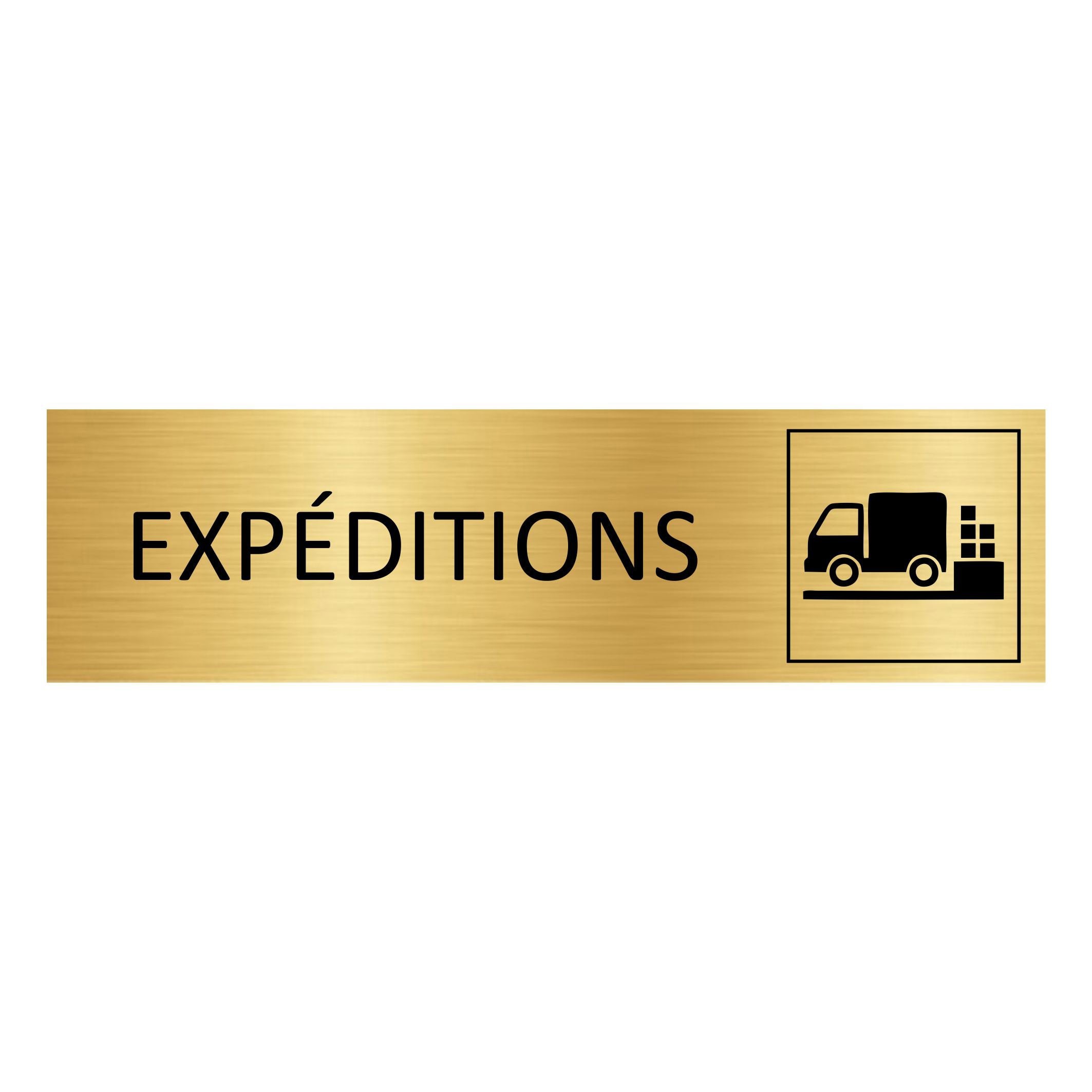 Plaque de porte pictogramme Expéditions - aluminium doré - 165 x 45 mm - avec ruban adhésif