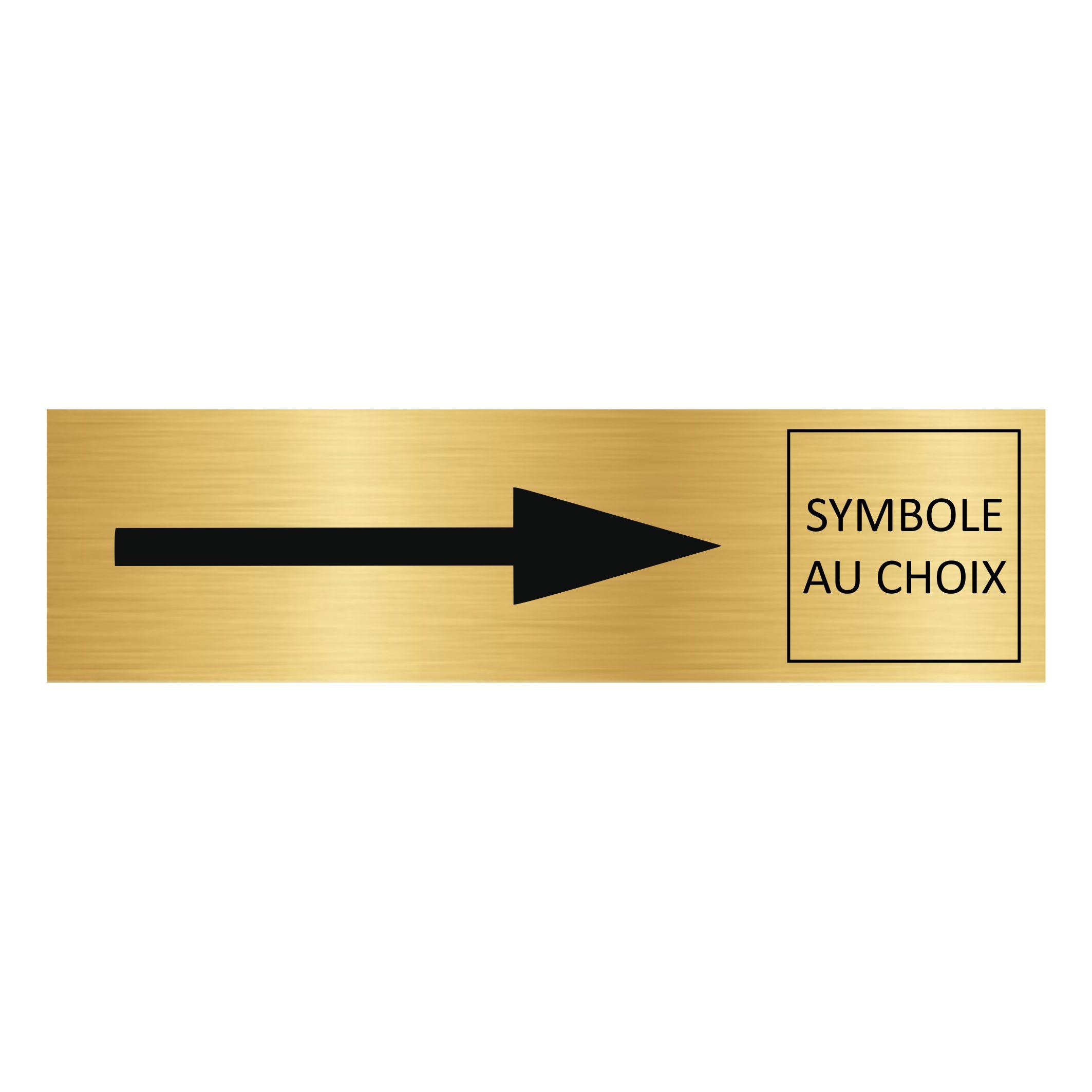 Plaque de porte flèche droite et symbole - aluminium doré - 165 x 45 mm - avec ruban adhésif