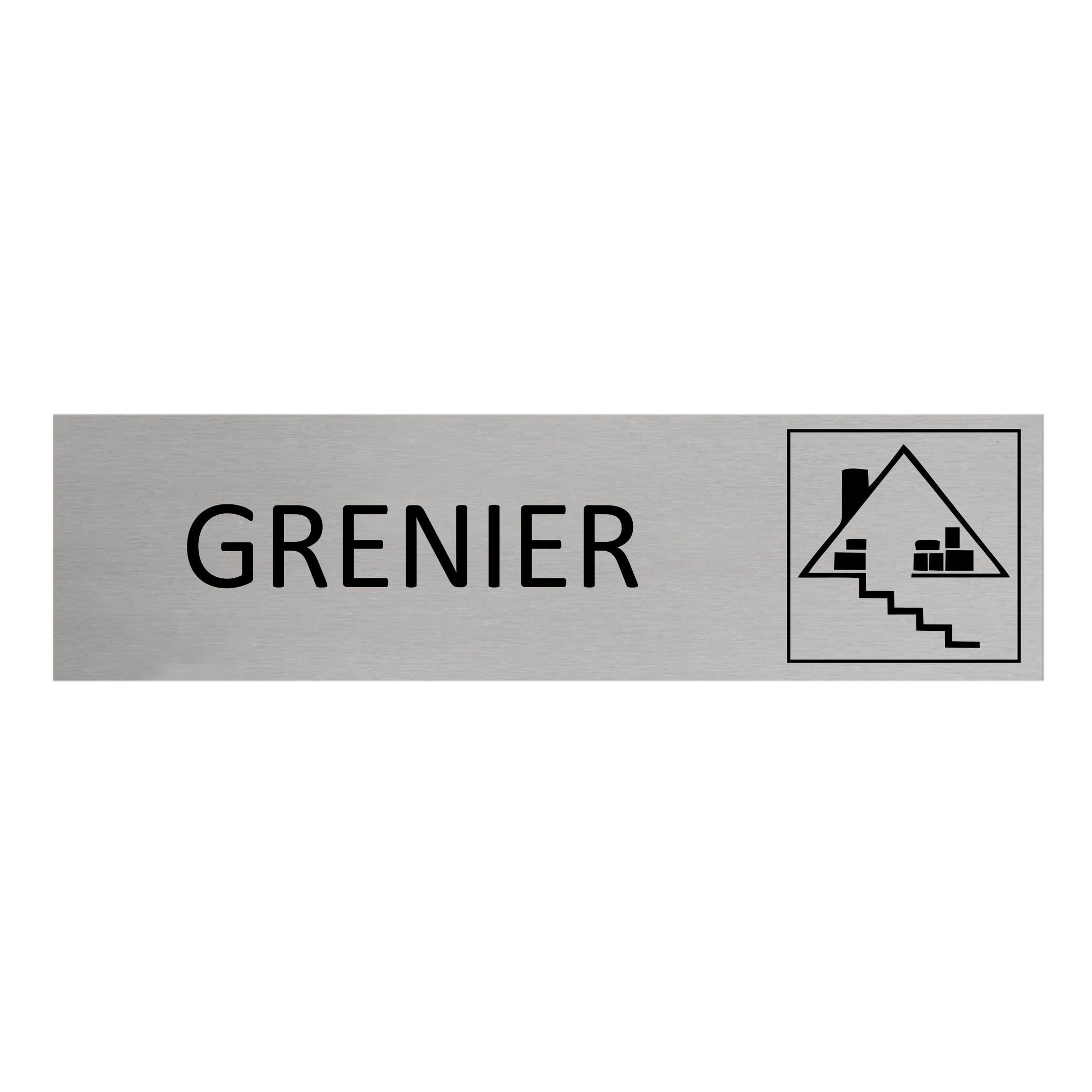Plaque de porte en aluminium Grenier avec ruban adhésif à l’arrière. La plaque mesure 165 x 45 mm et a une épaisseur de 0,5 mm. À installer à l’intérieur comme à l’extérieur. En savoir plus