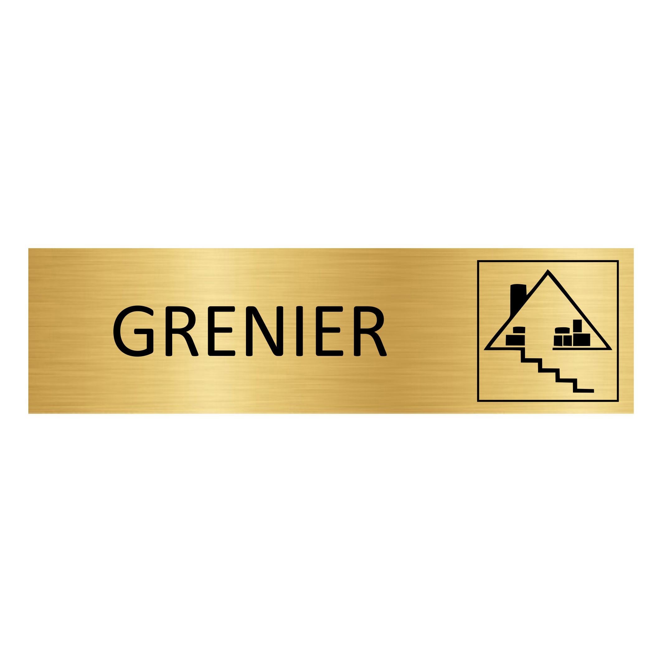 Plaque de porte pictogramme Grenier - aluminium doré - 165 x 45 mm - avec ruban adhésif