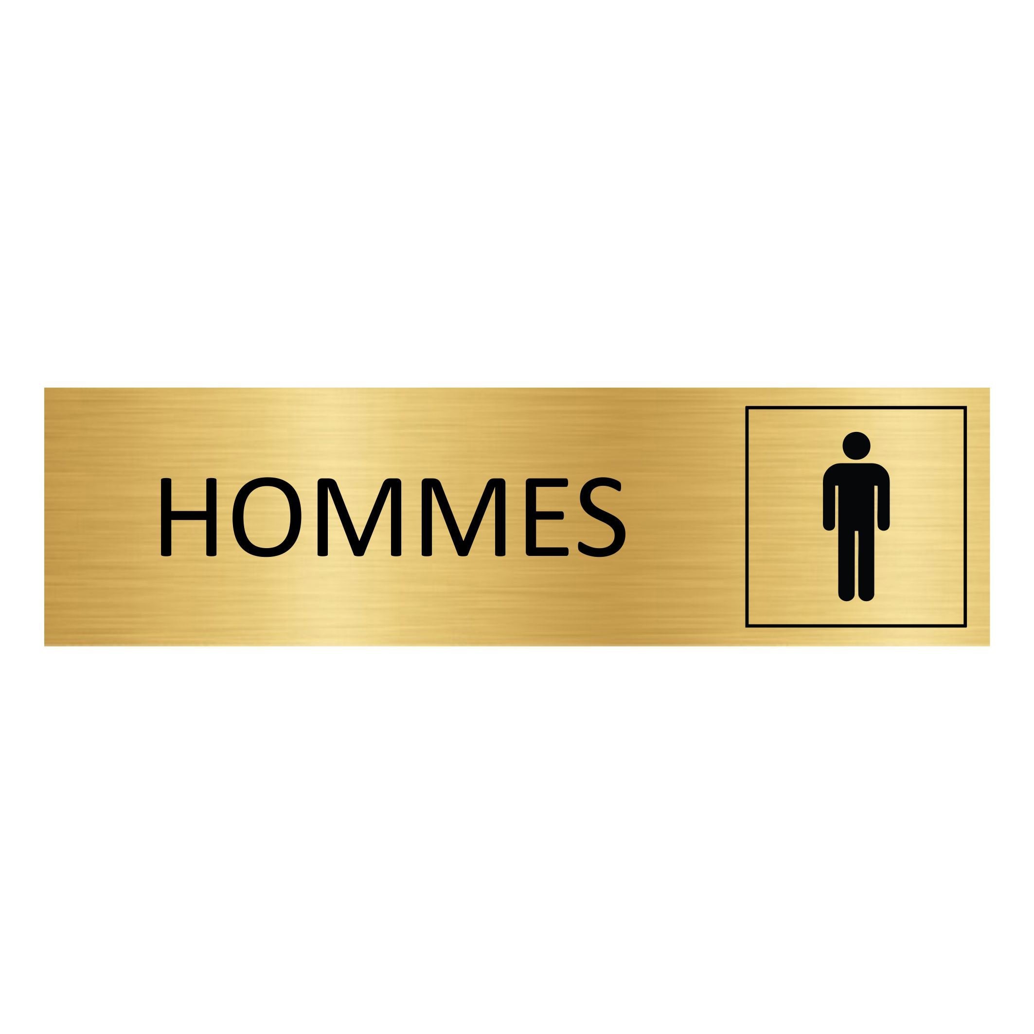 Plaque de porte pictogramme Hommes - aluminium doré - 165 x 45 mm - avec ruban adhésif