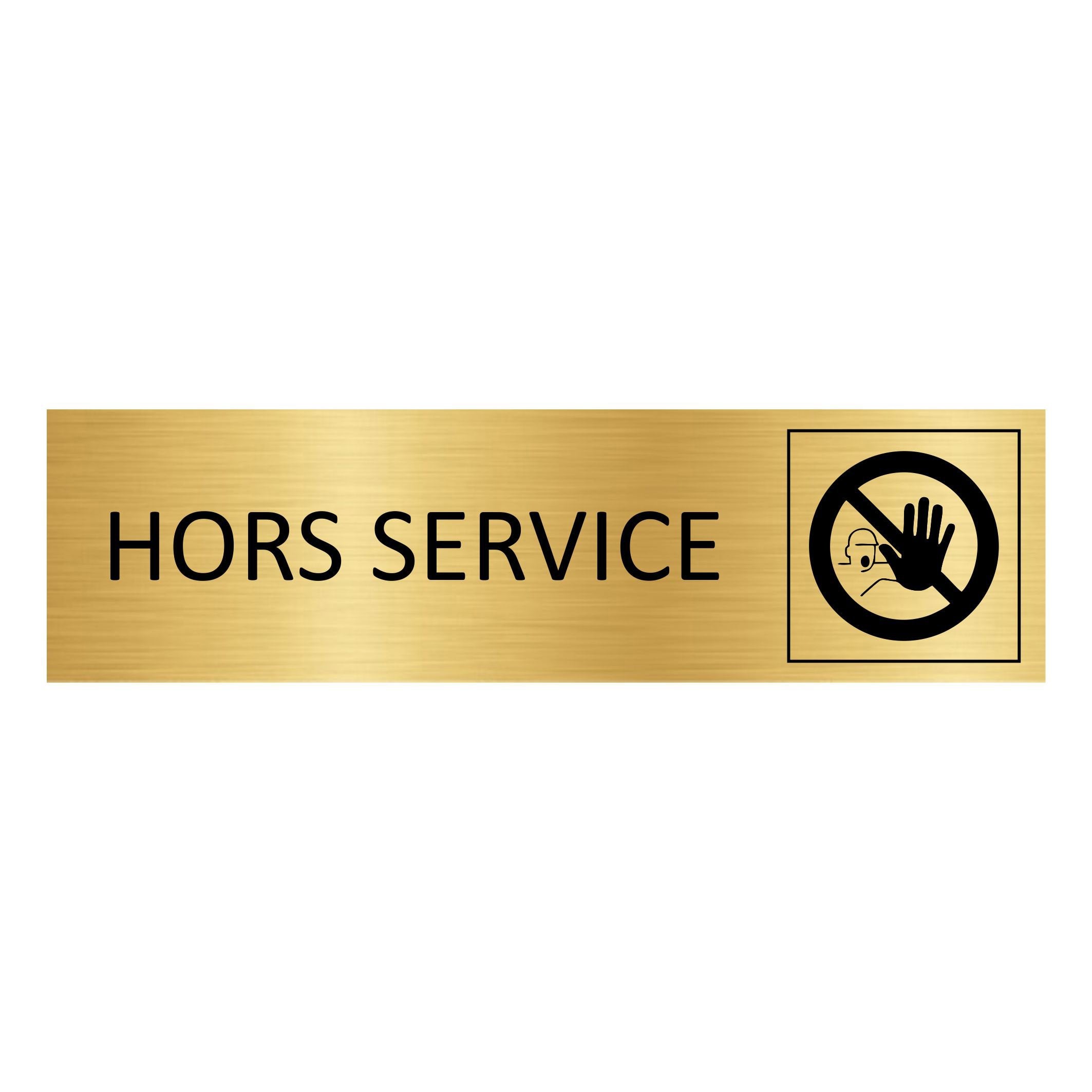 Plaque de porte pictogramme Hors service - aluminium doré - 165 x 45 mm - avec ruban adhésif