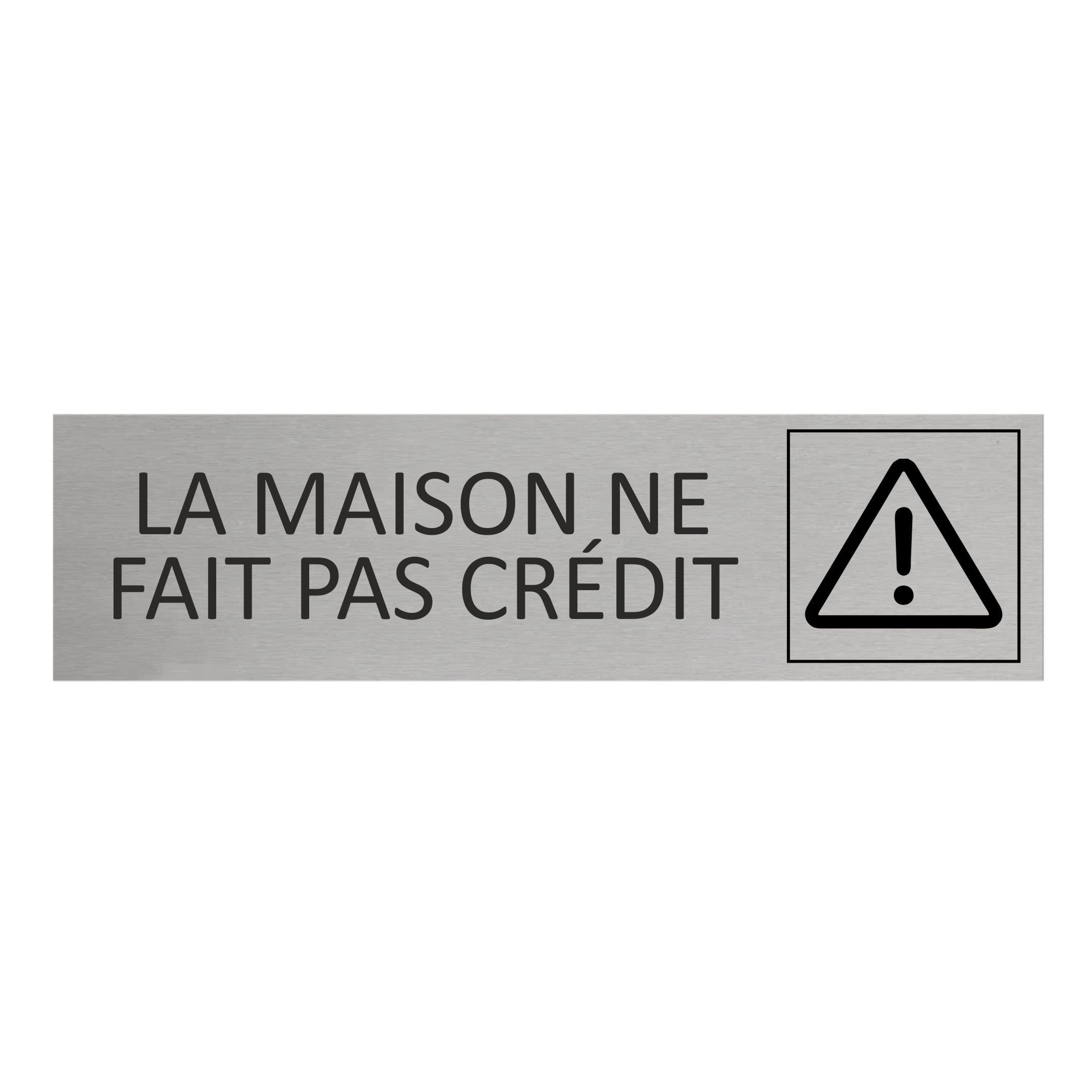 Plaque de porte La maison ne fait pas crédit ! - aluminium - 165 x 45 mm - avec ruban adhésif