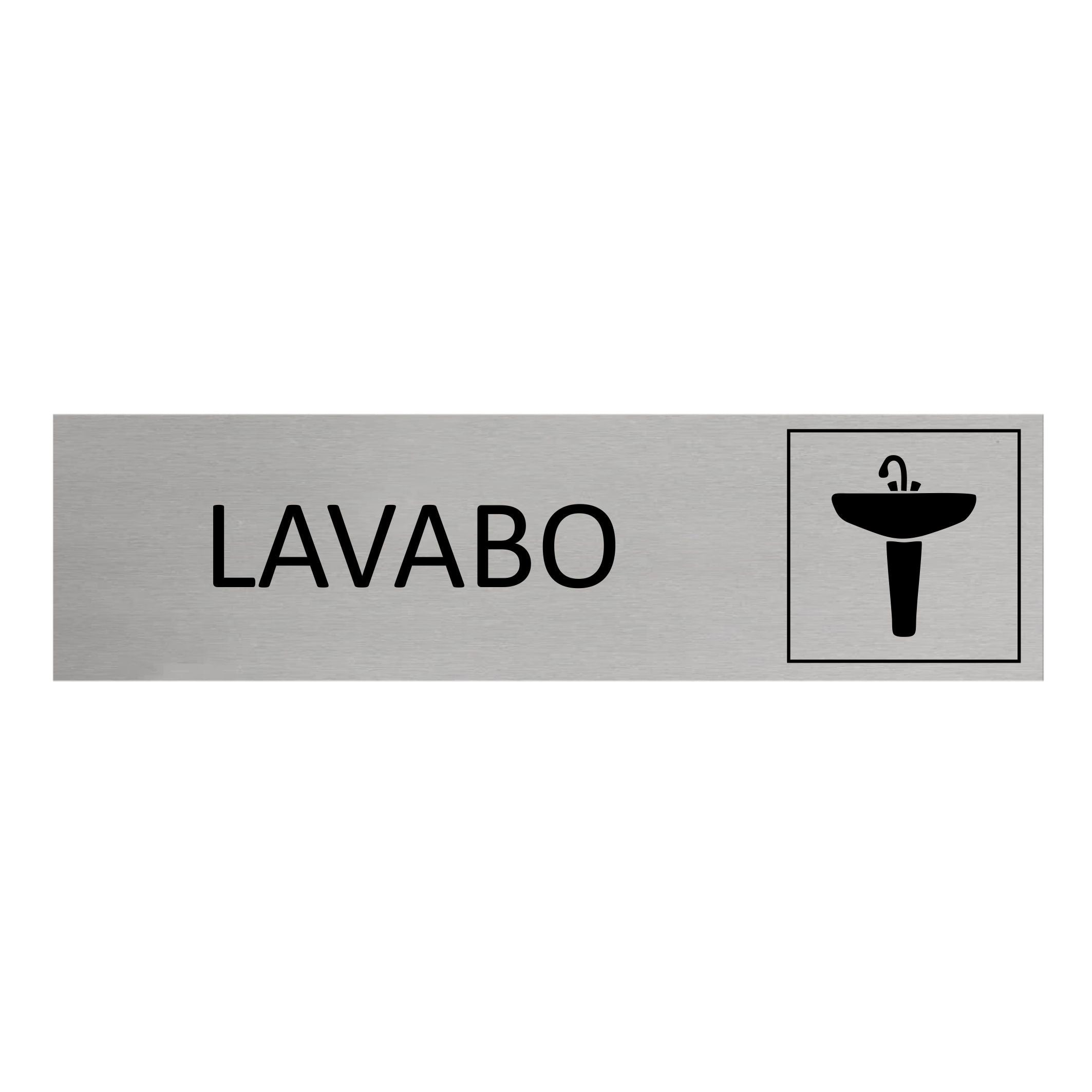 Plaque de porte en aluminium Lavabo avec ruban adhésif à l’arrière. La plaque mesure 165 x 45 mm et a une épaisseur de 0,5 mm. À installer à l’intérieur comme à l’extérieur.