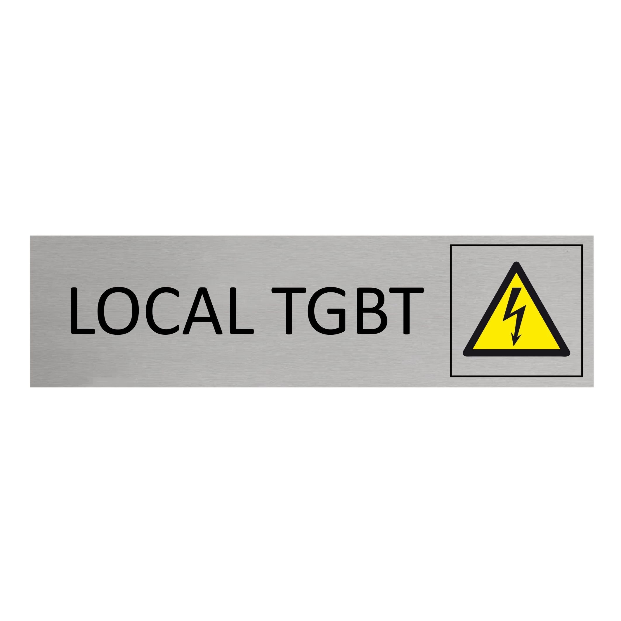 Plaque de porte en aluminium local TGBT avec ruban adhésif à l’arrière. La plaque mesure 165 x 45 mm et a une épaisseur de 0,5 mm. À installer à l’intérieur comme à l’extérieur.