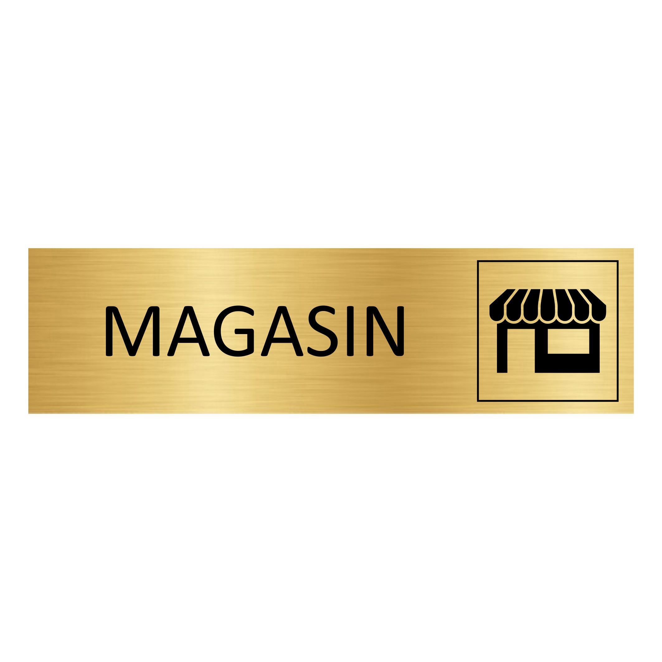 Plaque de porte pictogramme Magasin - aluminium doré - 165 x 45 mm - avec ruban adhésif