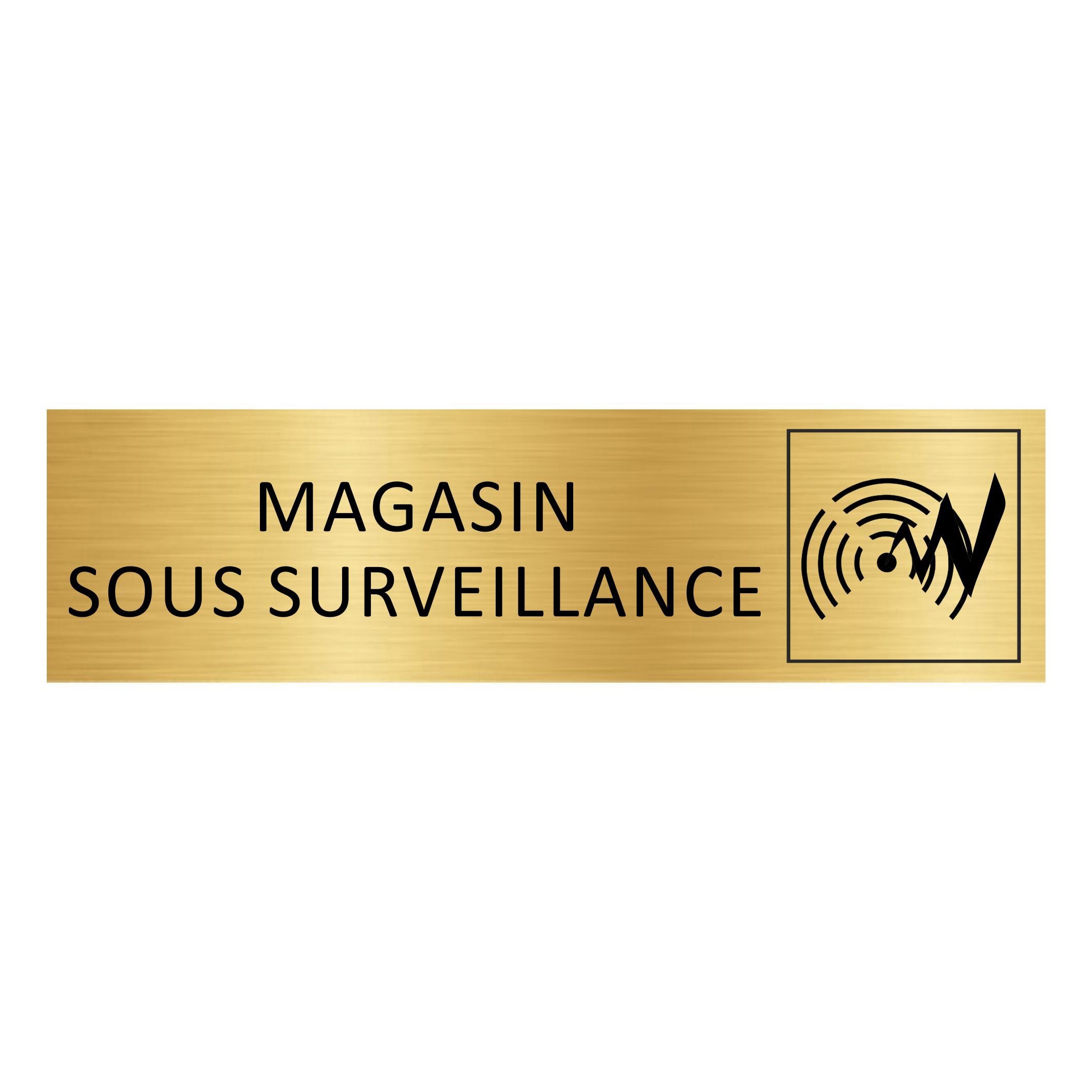 Plaque de porte pictogramme Magasin sous surveillance électronique - aluminium doré - 165 x 45 mm - avec ruban adhésif