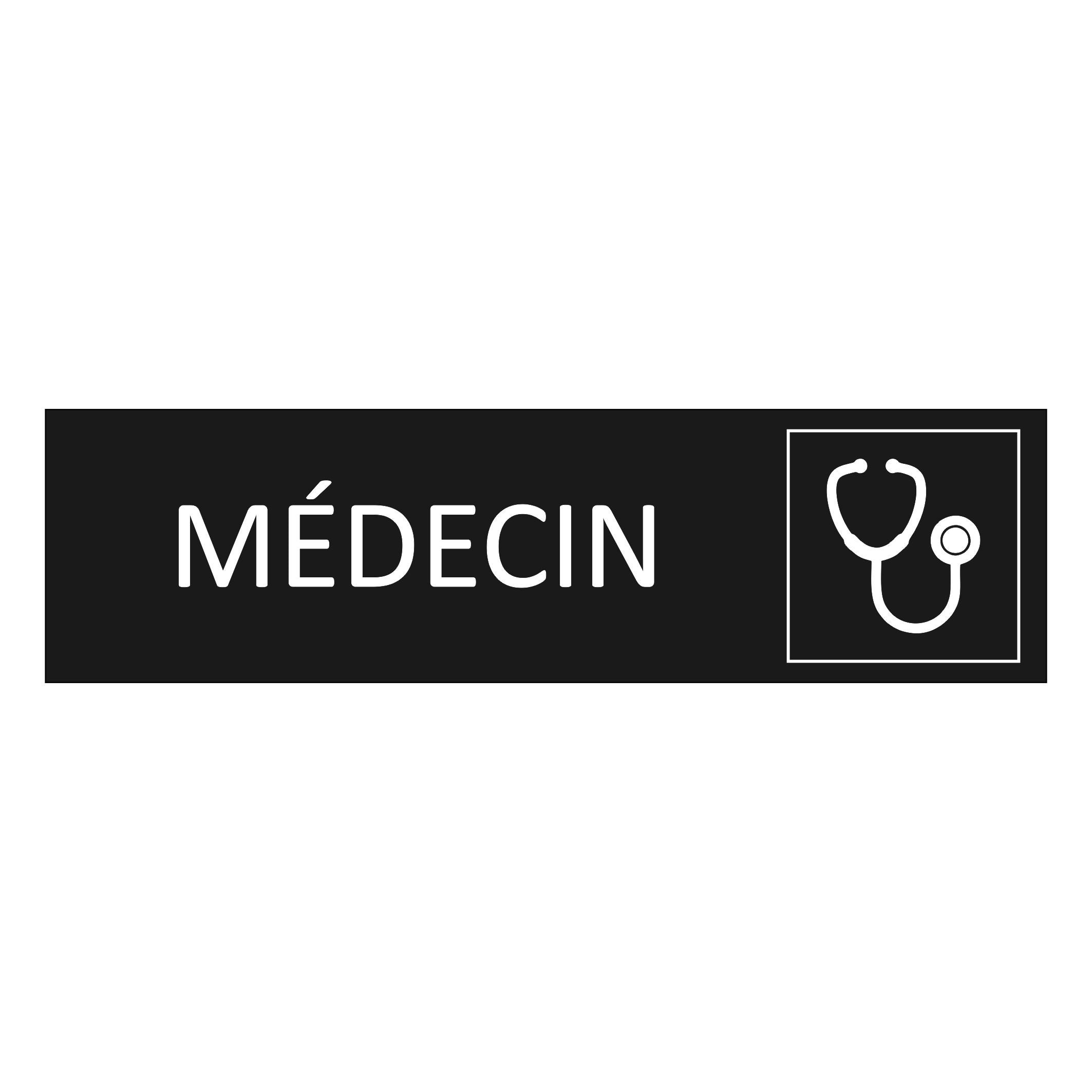 Plaque de porte Médecin - aluminium noir - 165 x 45 mm - avec ruban adhésif