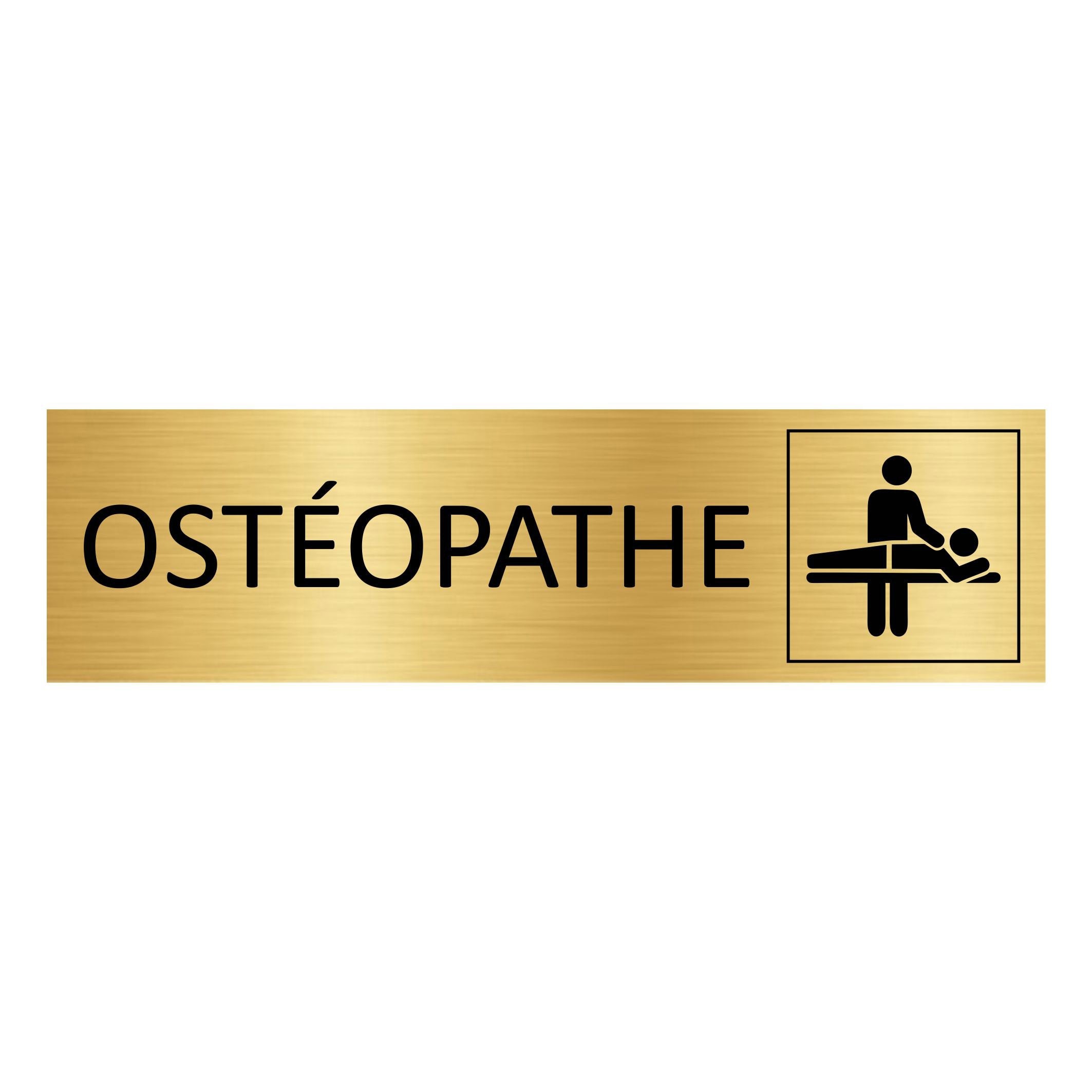 Plaque de porte pictogramme Ostéopathe - aluminium doré - 165 x 45 mm - avec ruban adhésif
