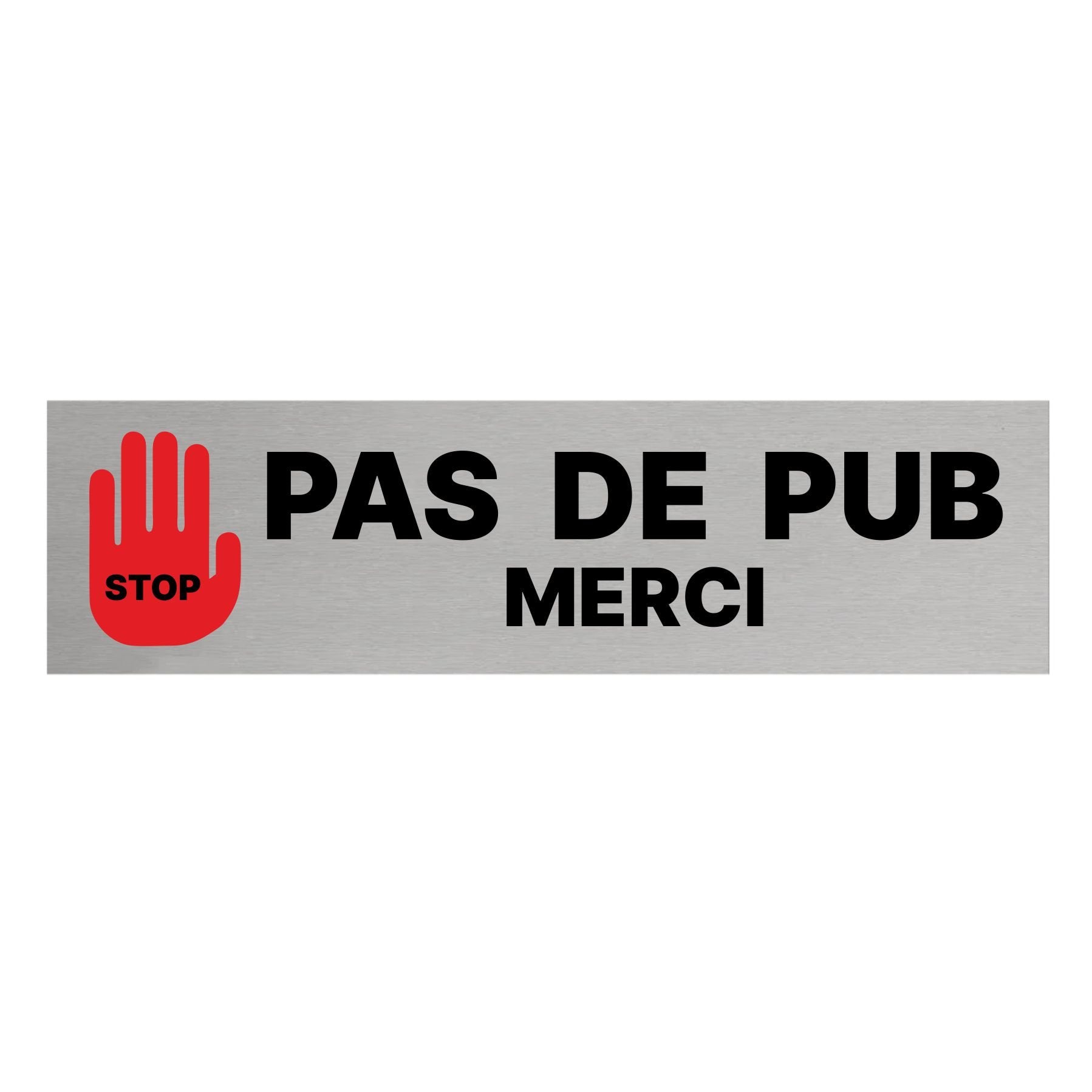 Plaque de porte Pas de pub main stop - aluminium - 165 x 45 mm - avec ruban adhésif