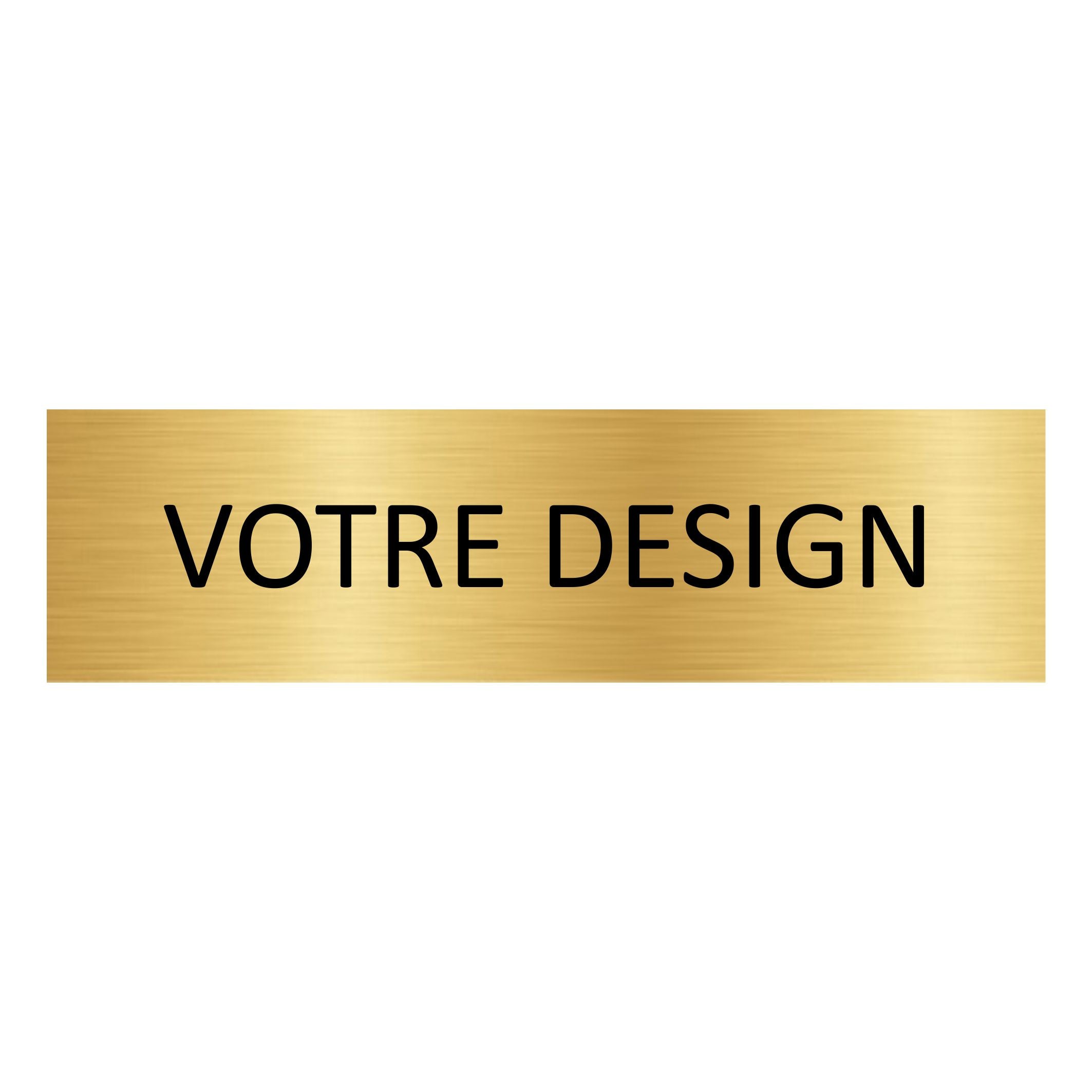 Plaque de porte en aluminium doré à personnaliser avec design, avec ruban adhésif à l’arrière. La plaque mesure 165 x 45 mm et a une épaisseur de 0,5 mm. À installer à l’intérieur comme à l’extérieur. En savoir plus