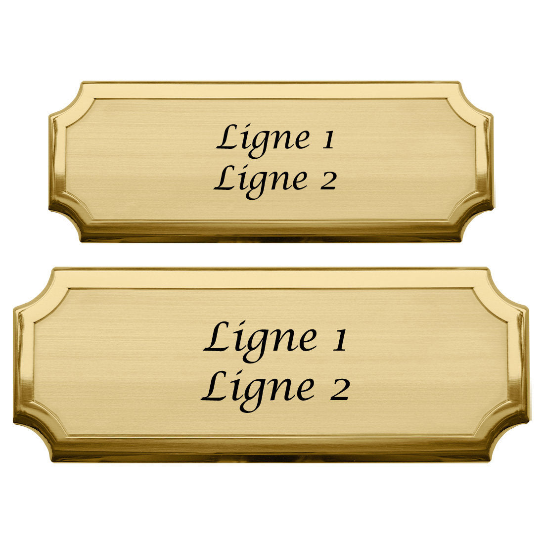 Personnalisez cette plaque de porte Florentia avec deux lignes de texte. Installez cette plaque sur des portes d'hôtel ou autres endroits. Le texte est gravé en noir à l'aide de gravure au laser. Conçu en laiton brillant. Vendu par pièce. En savoir plus