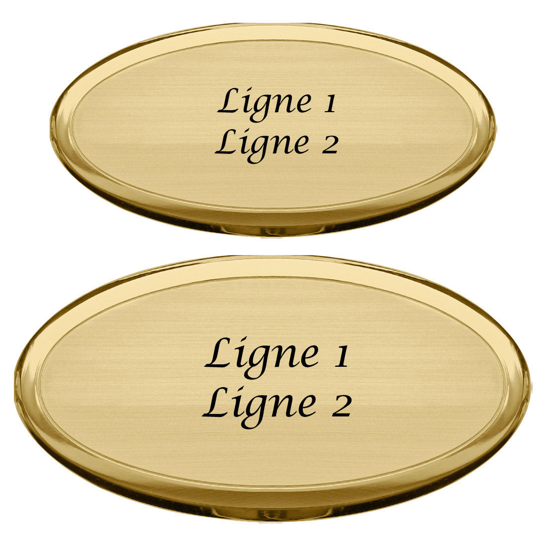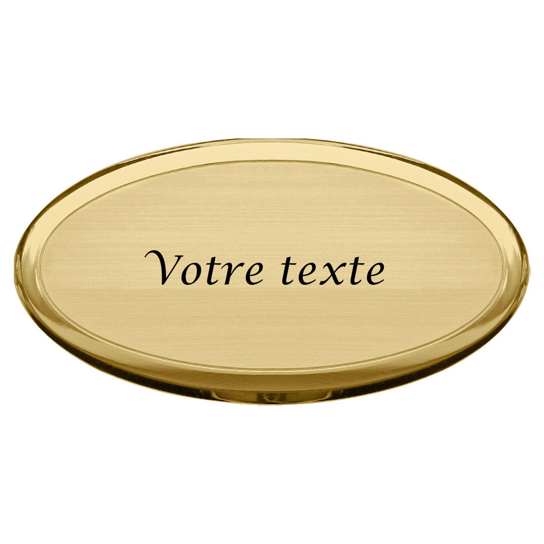 Personnalisez cette plaque de porte Ovalia avec deux lignes de texte. Installez cette plaque sur des portes d'hôtel ou autres endroits. Le texte est gravé en noir à l'aide de gravure au laser. Conçu en laiton brillant. Vendu par pièce. En savoir plus